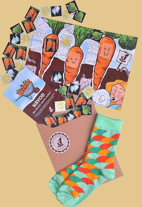 Zásilka obsahuje dětské ponožky a jednoduchou hru.