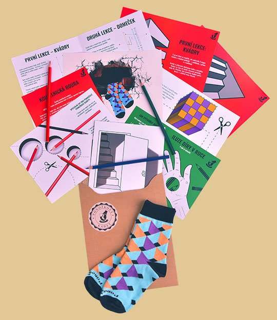 Ponožky proto doplňuje dětská hra, která malé kadety připravila několik zábavných lekcí perpektivy.