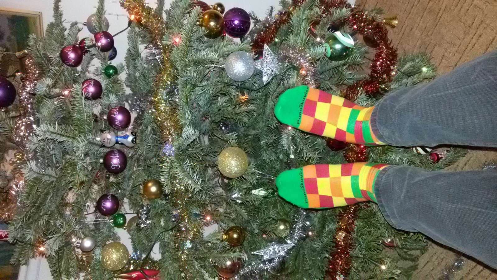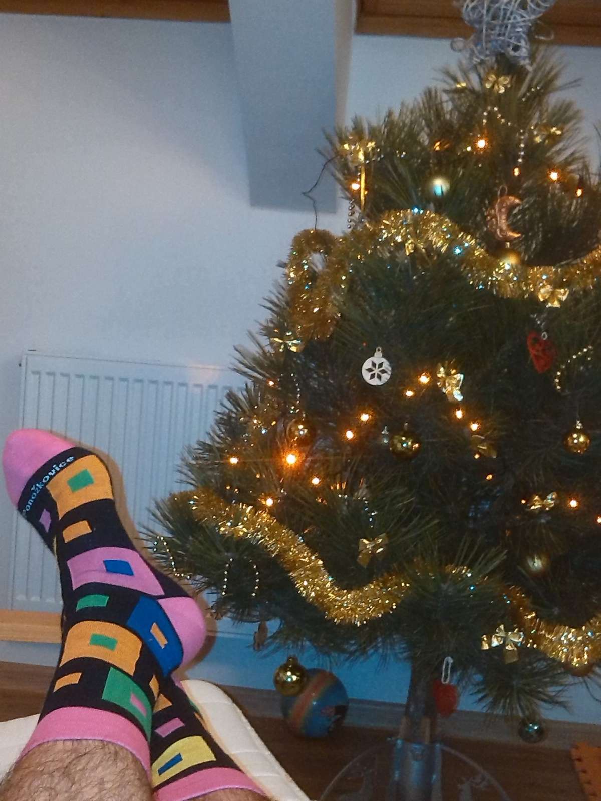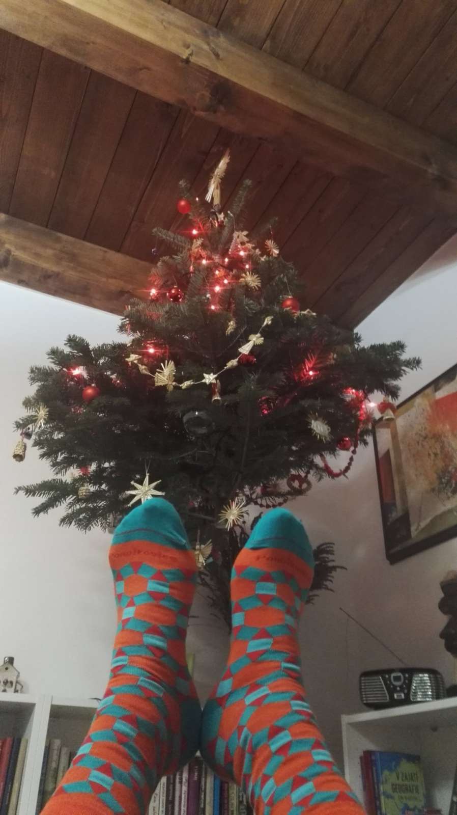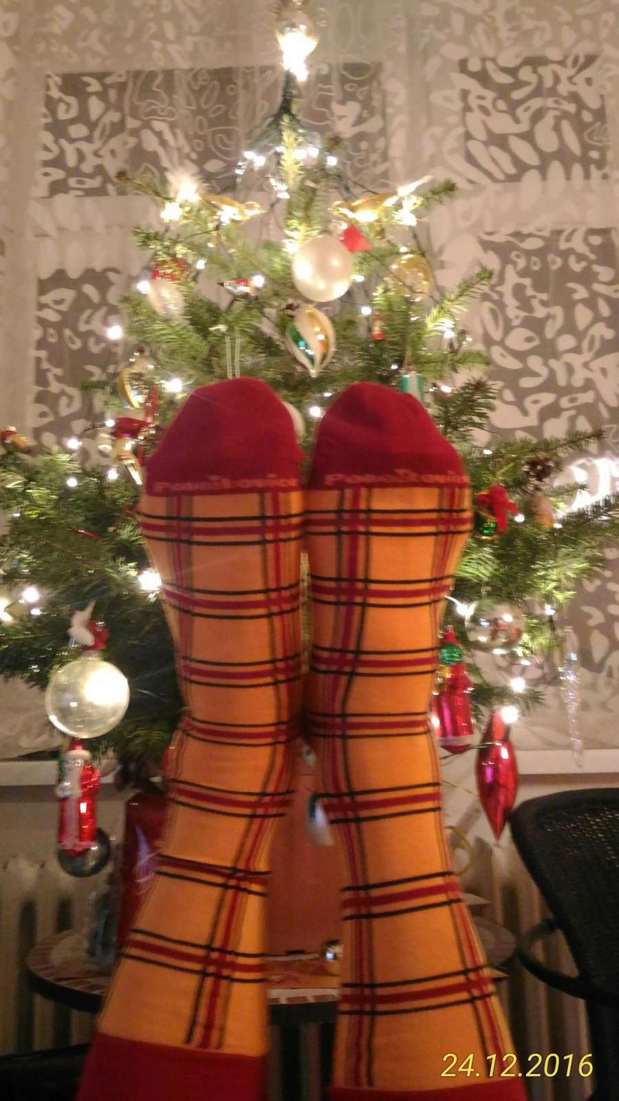 Nevím jak kde, ale u nás doma proběhla "tuhá bitva" a nakonec vítězství bylo na straně Ponožkovic a mohli jsme se pokochat netradiční ozdobou stromečku.