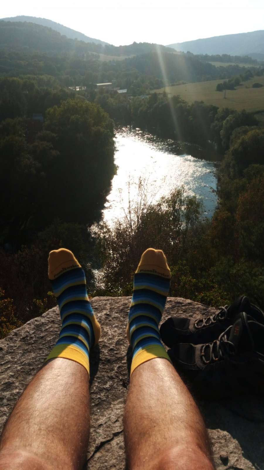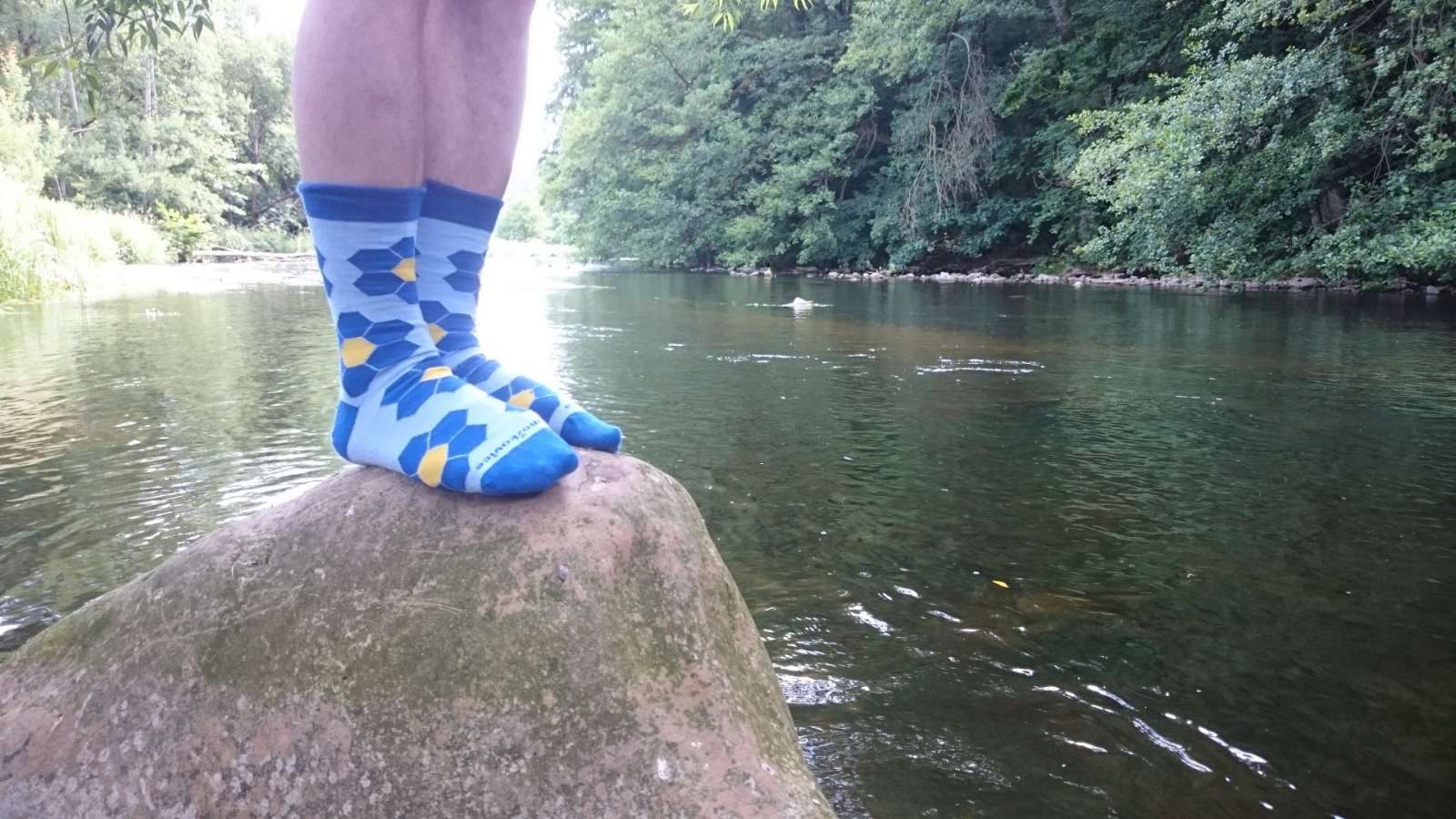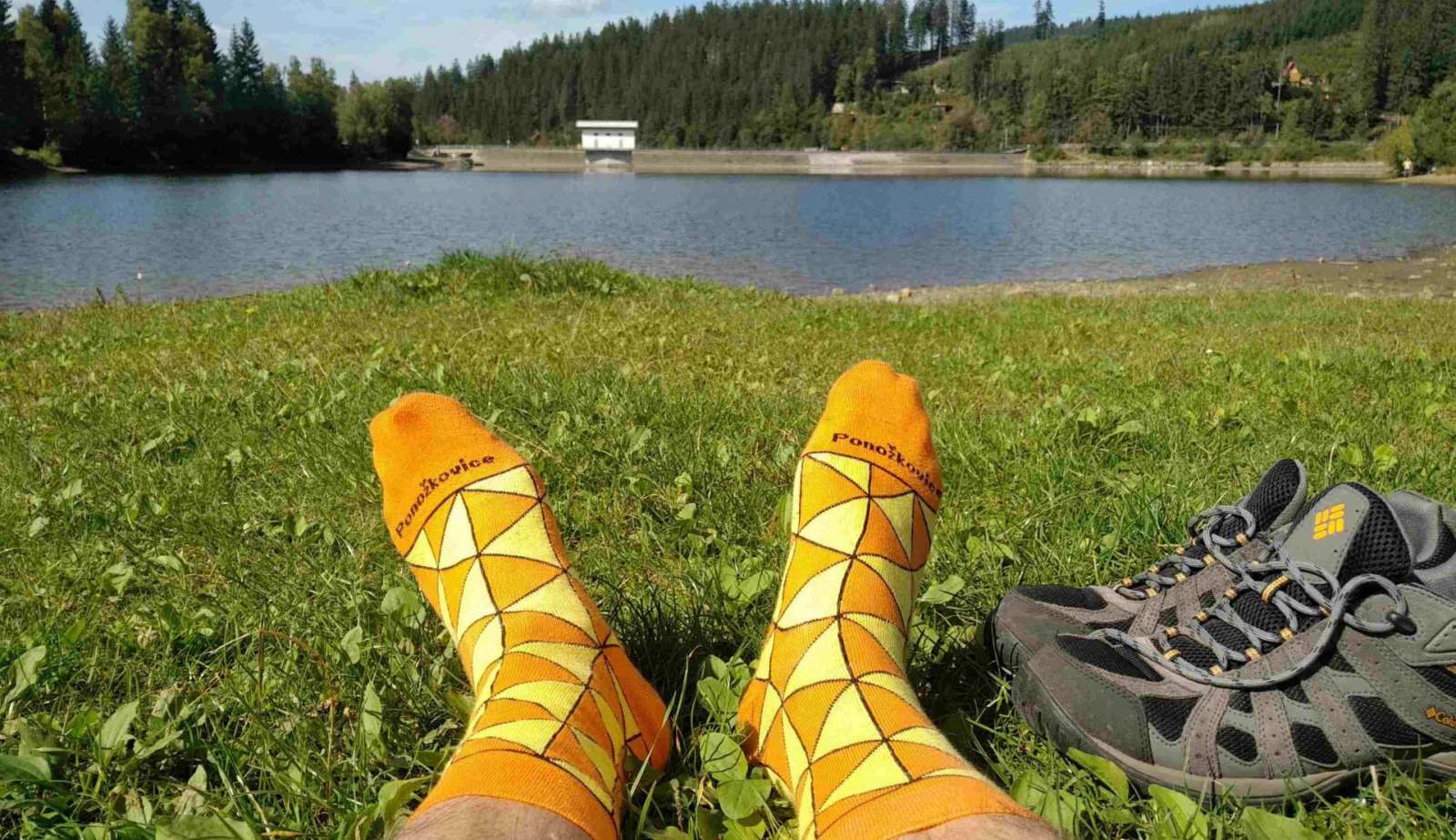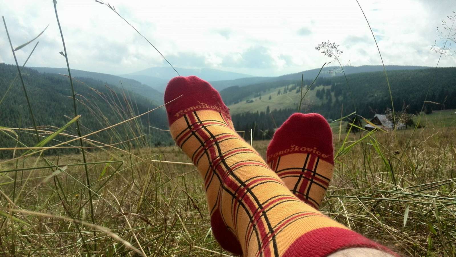 Moje druhé ponožky si vyšly se mnou na pstruhy. Nemusíme se fotit jenom na světových místech.