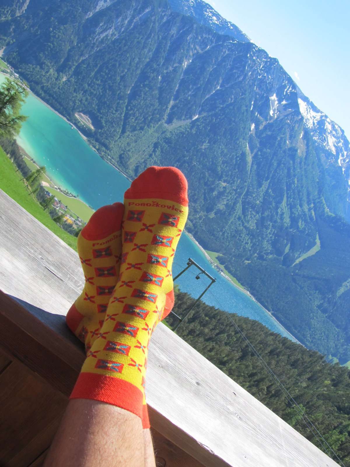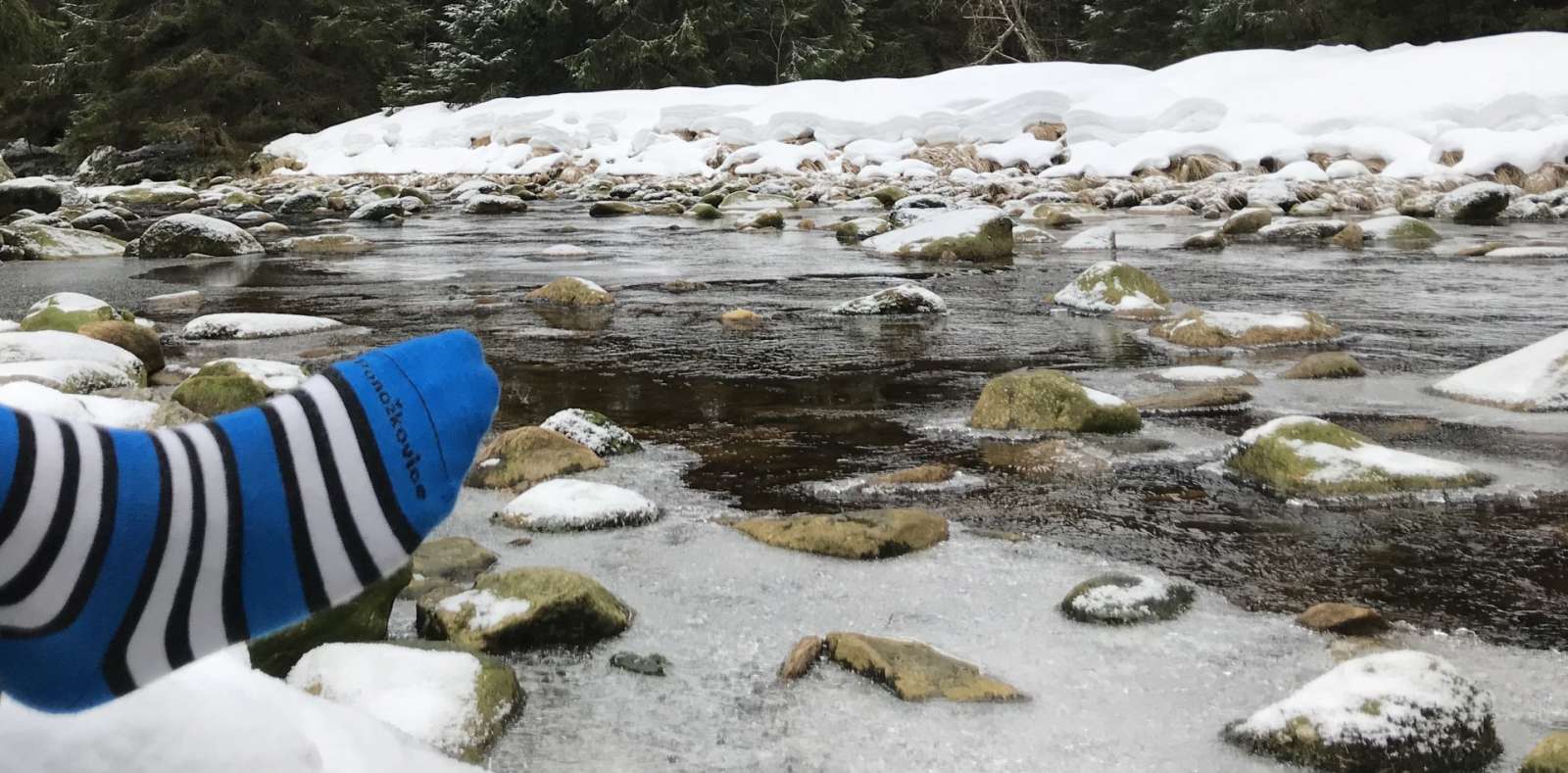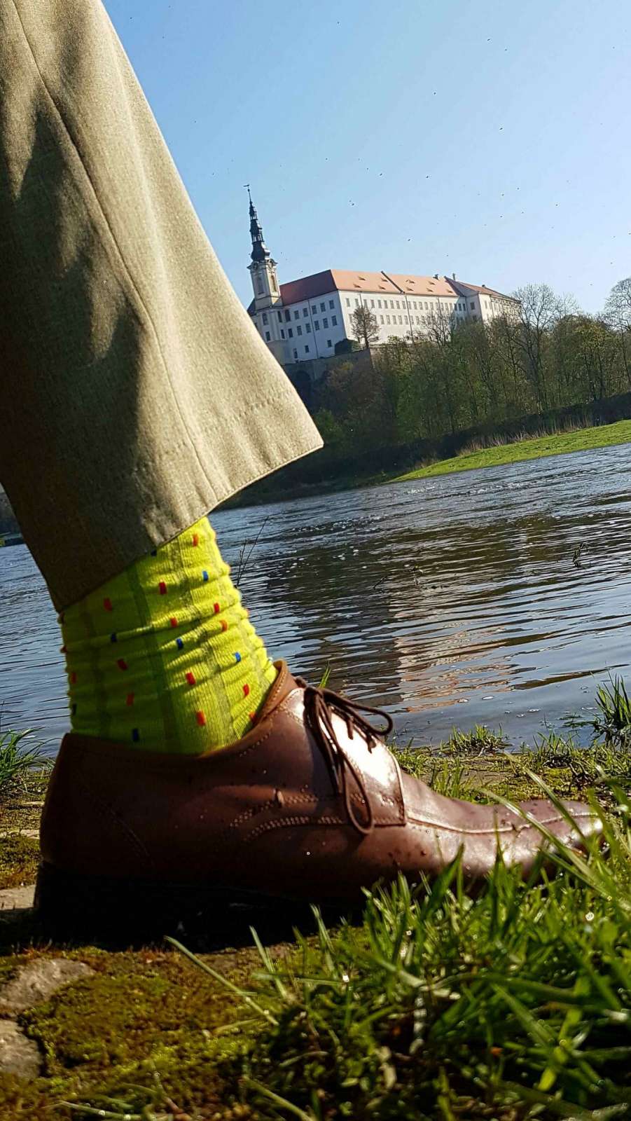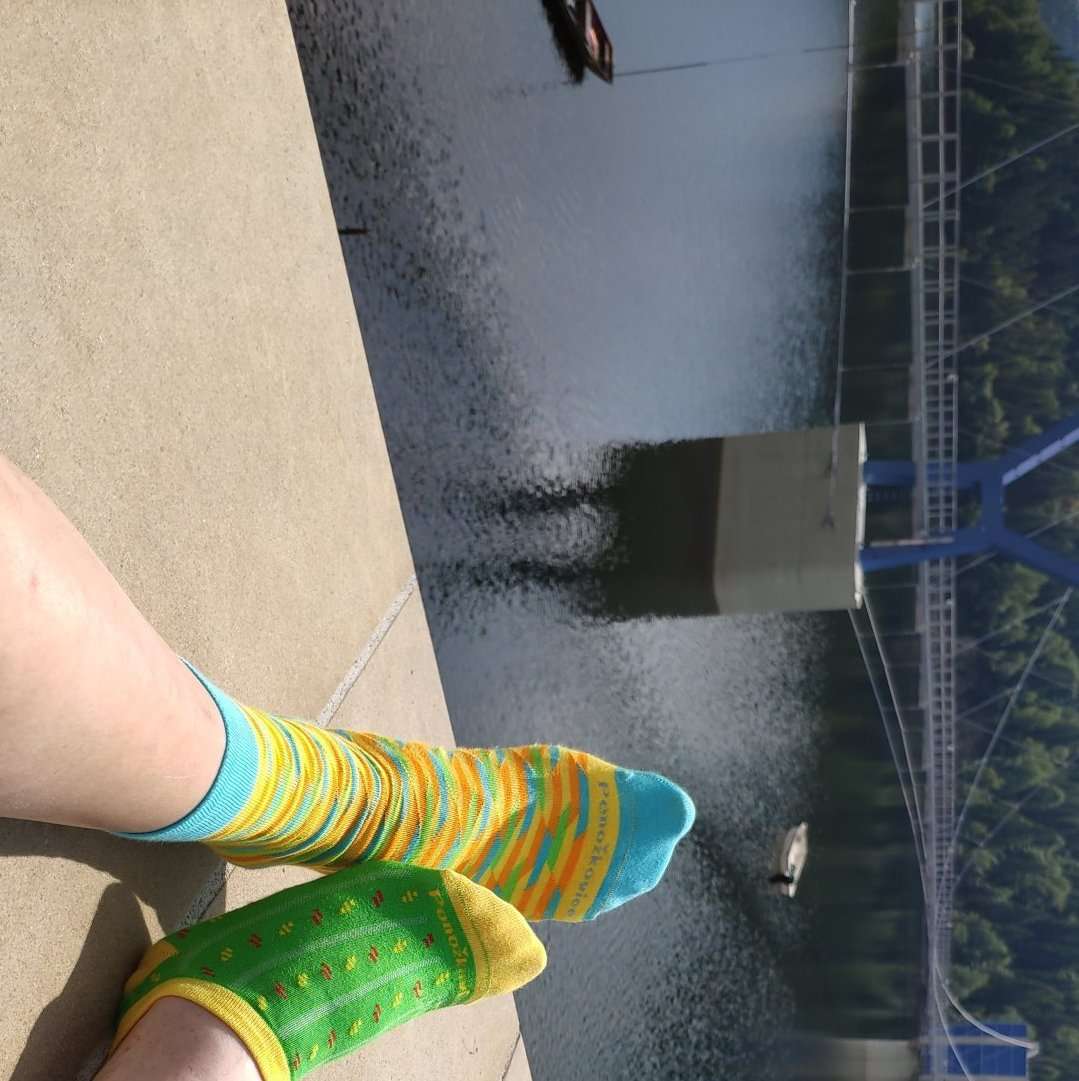 Moje druhé ponožky si vyšly se mnou na pstruhy. Nemusíme se fotit jenom na světových místech.