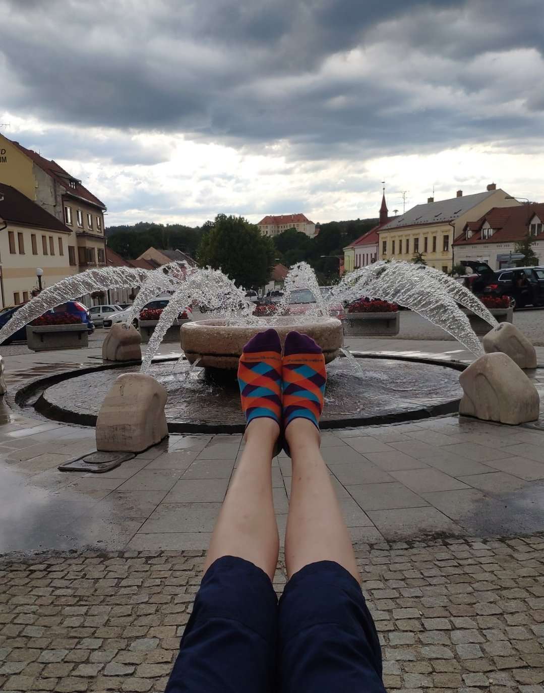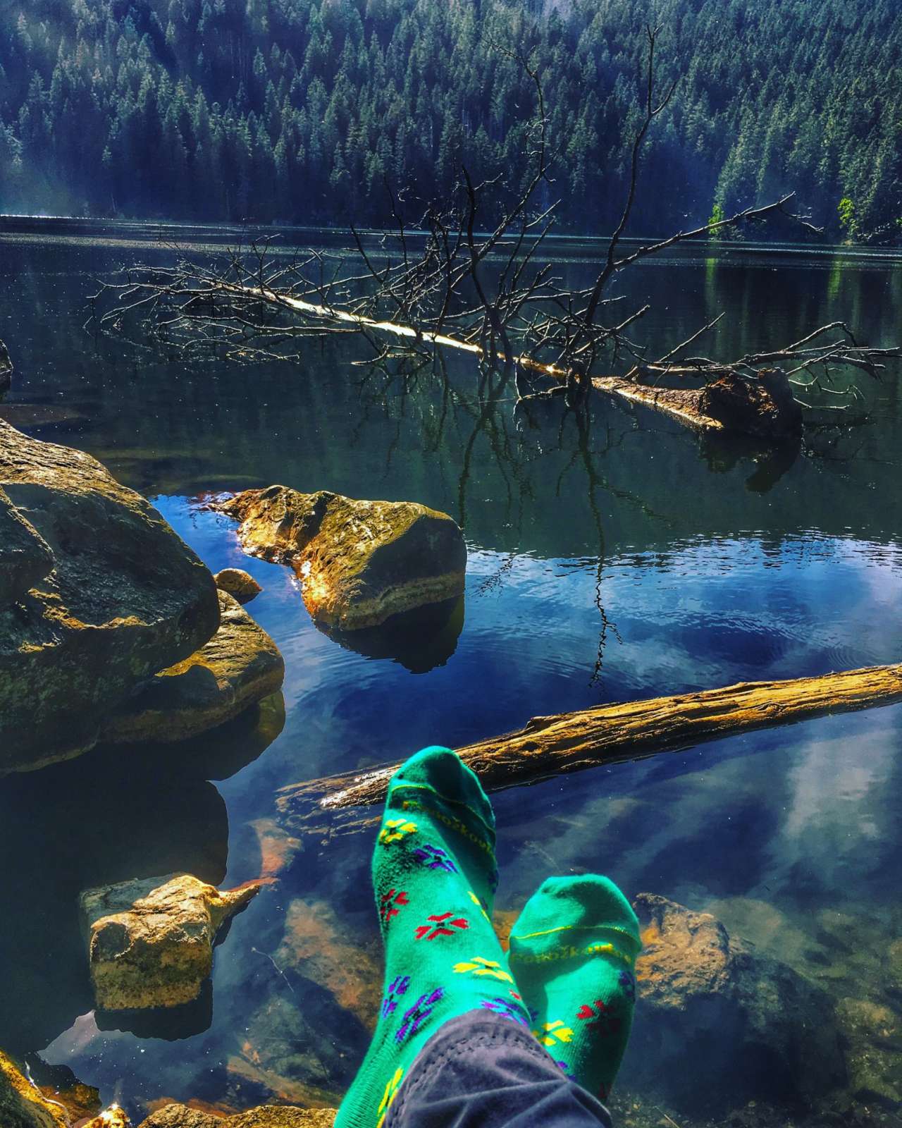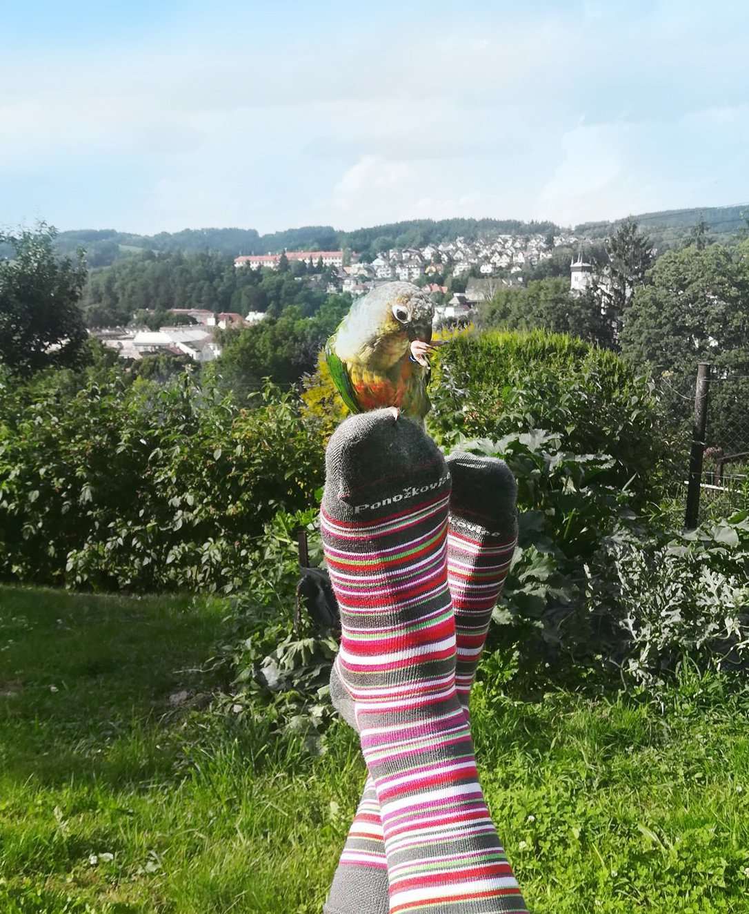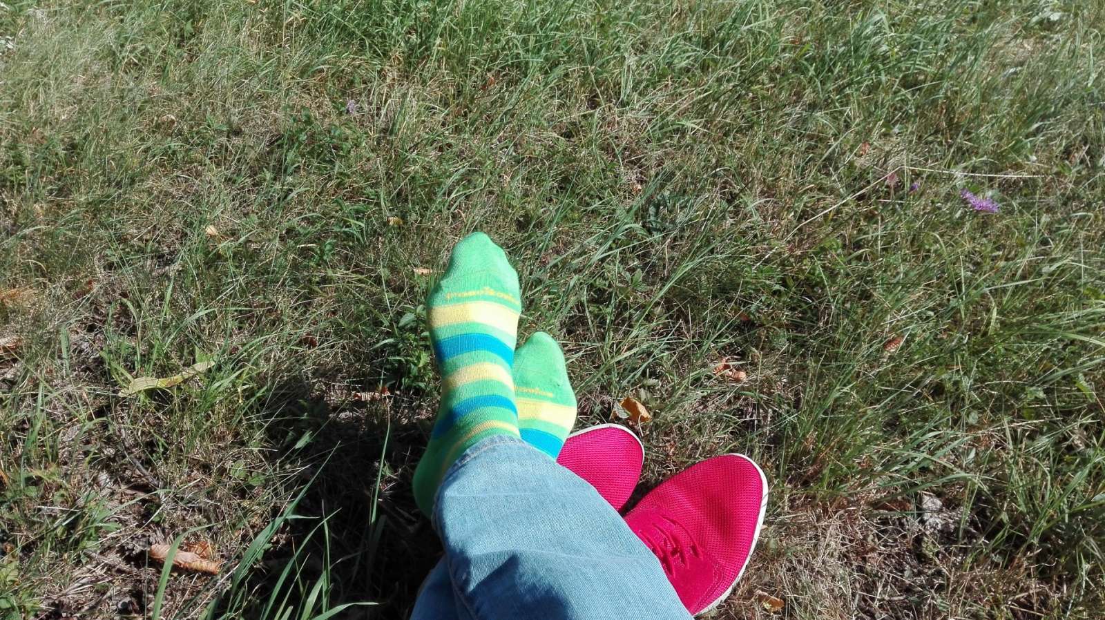 Moje druhé ponožky si vyšly se mnou na pstruhy. Nemusíme se fotit jenom na světových místech.