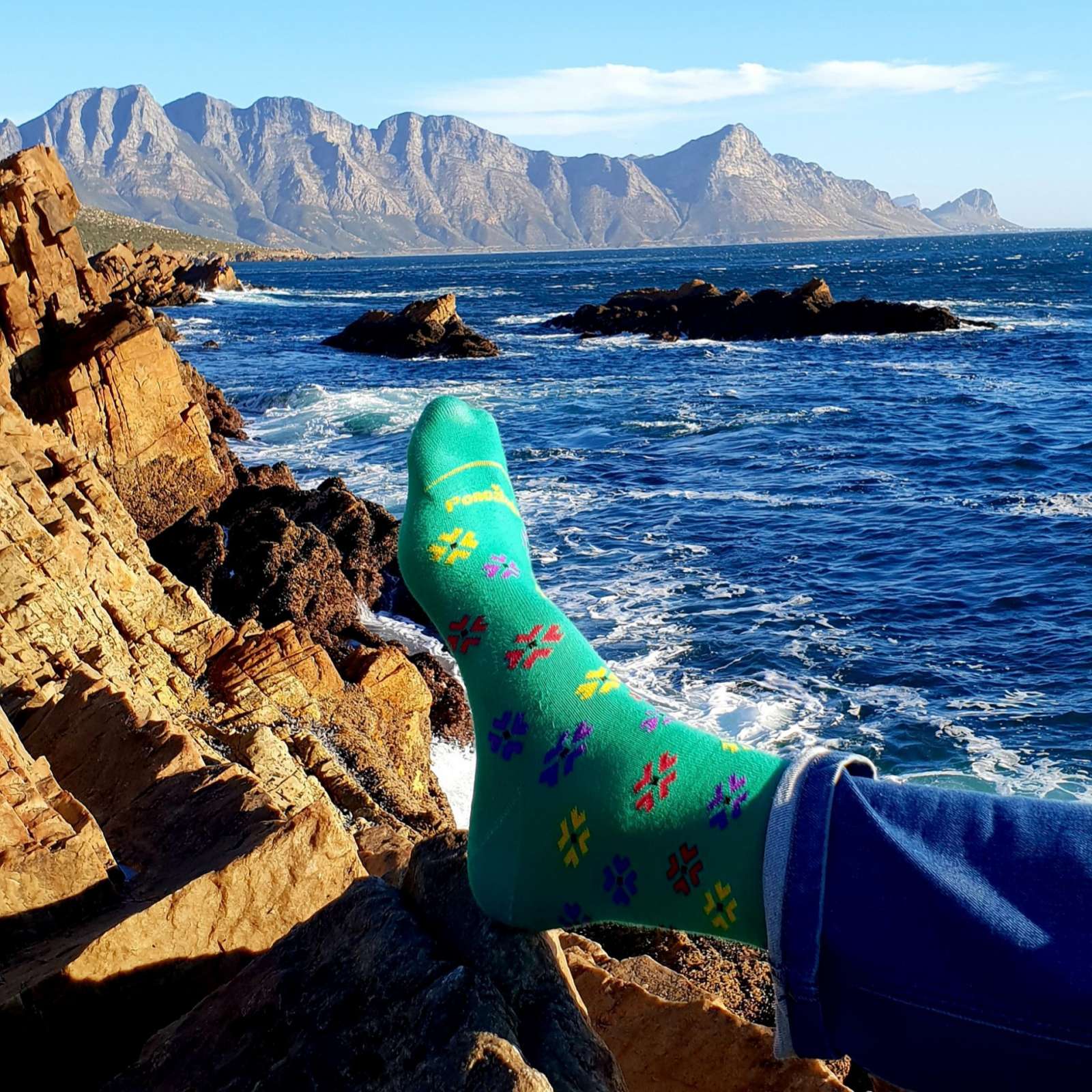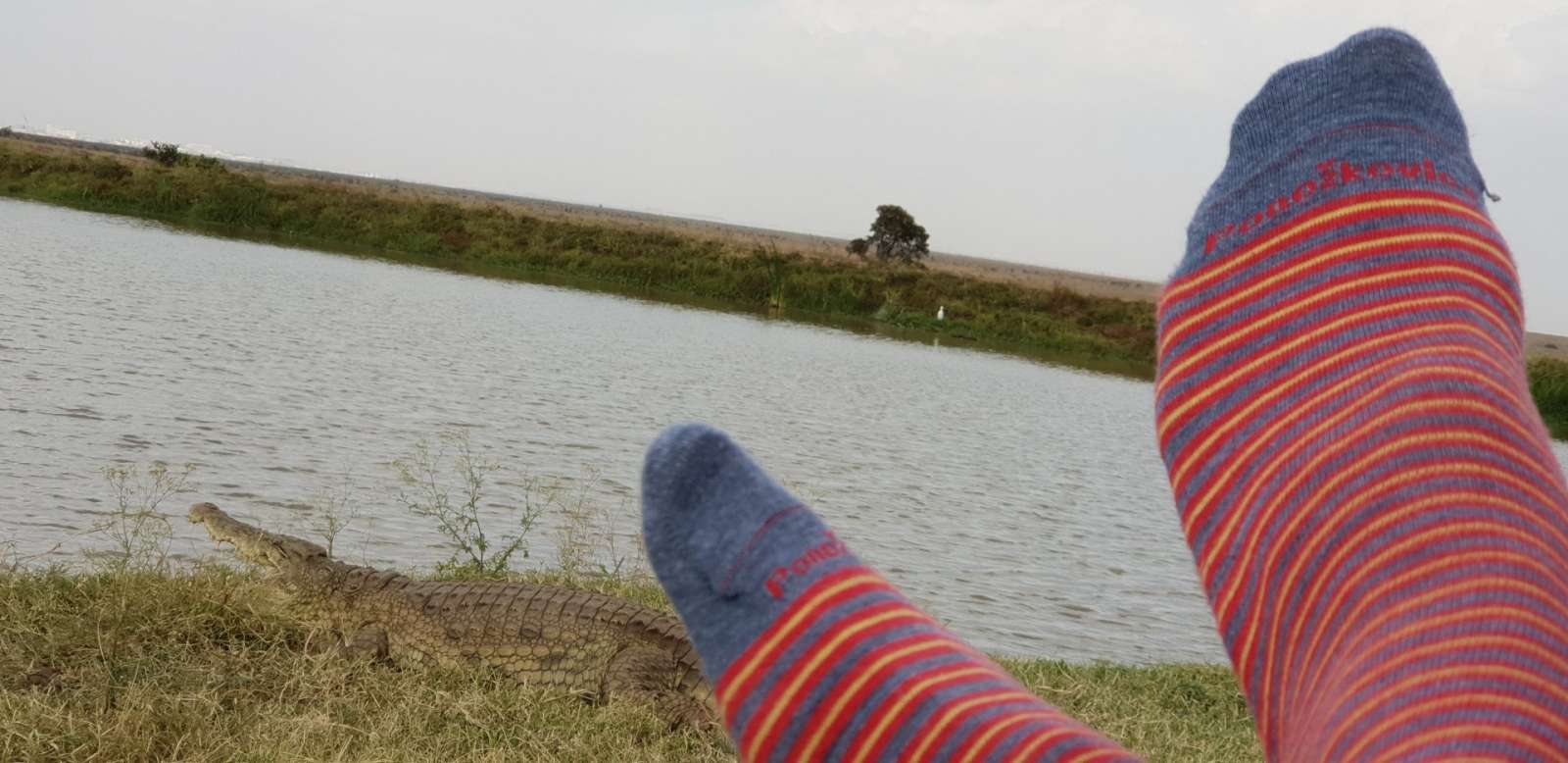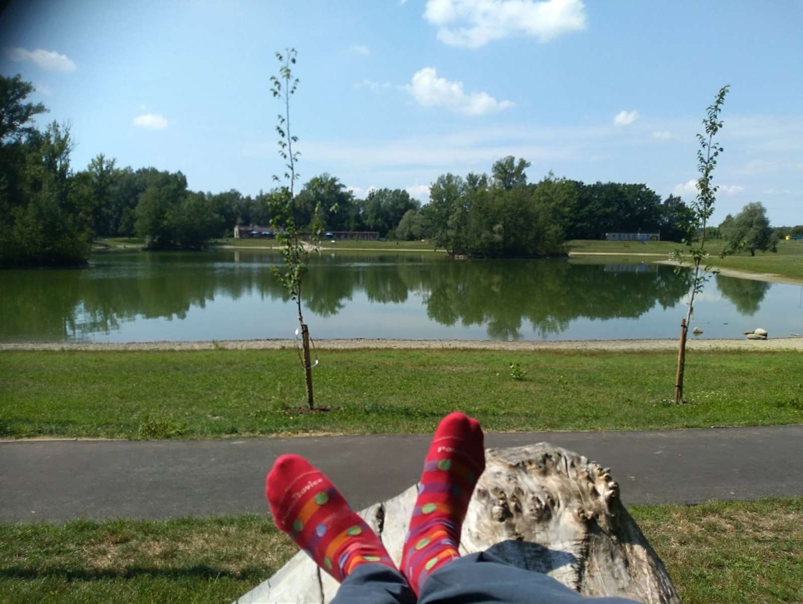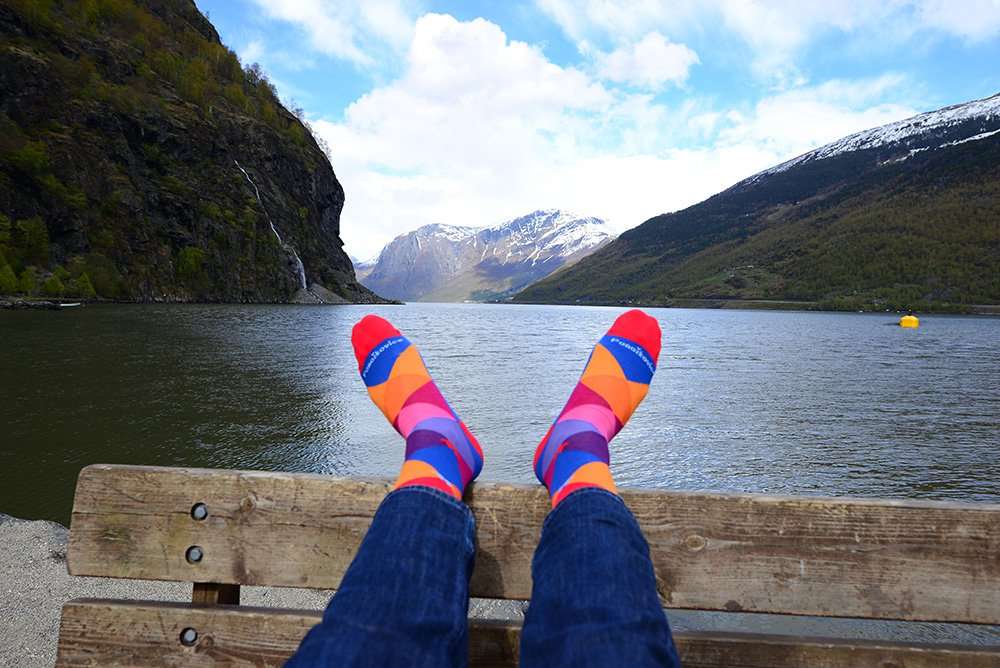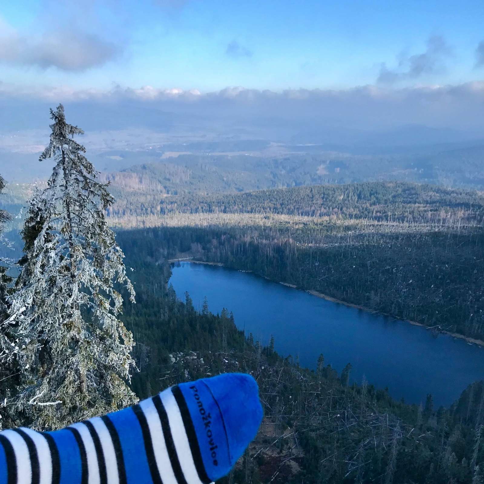 Moje druhé ponožky si vyšly se mnou na pstruhy. Nemusíme se fotit jenom na světových místech.