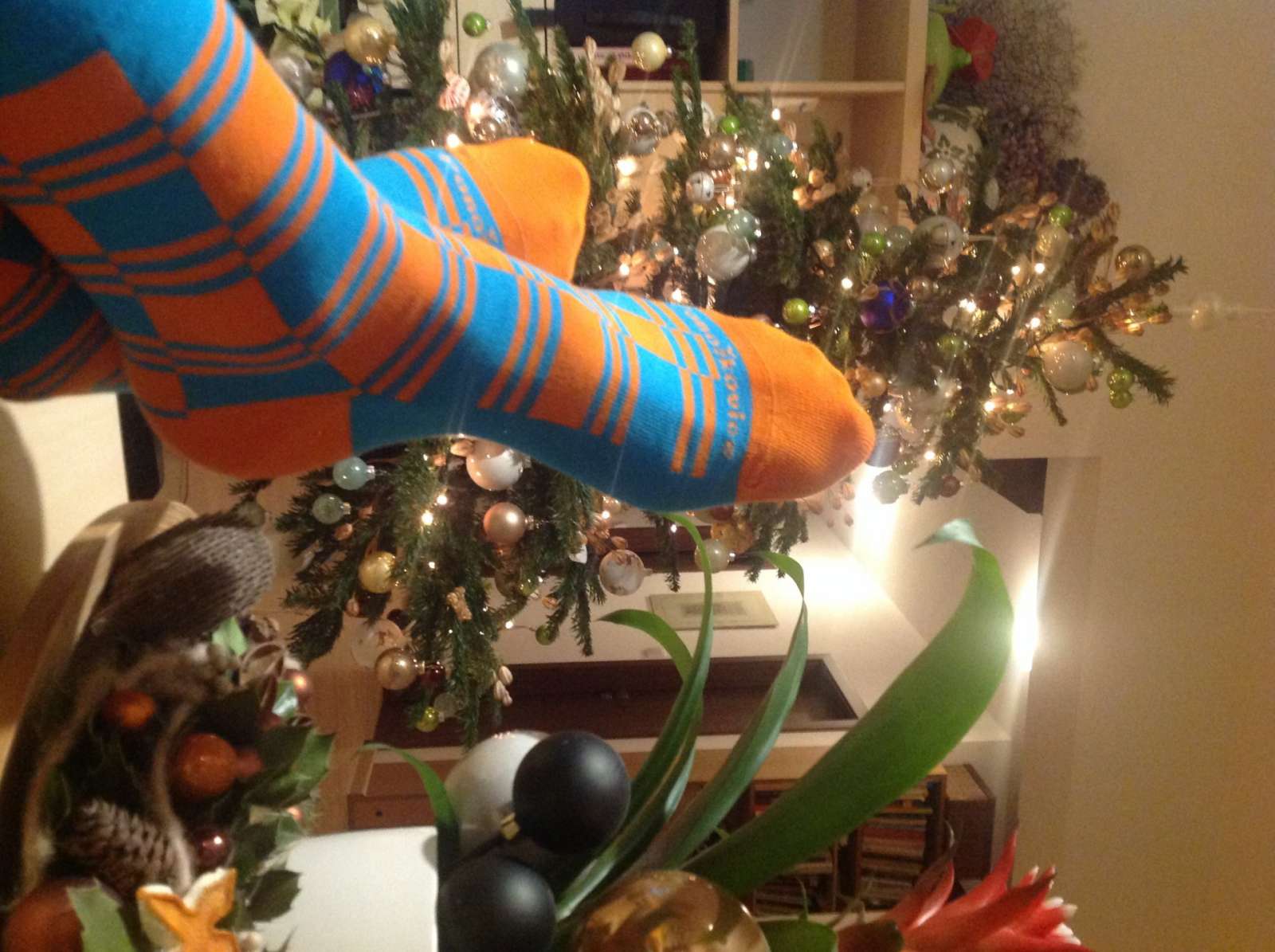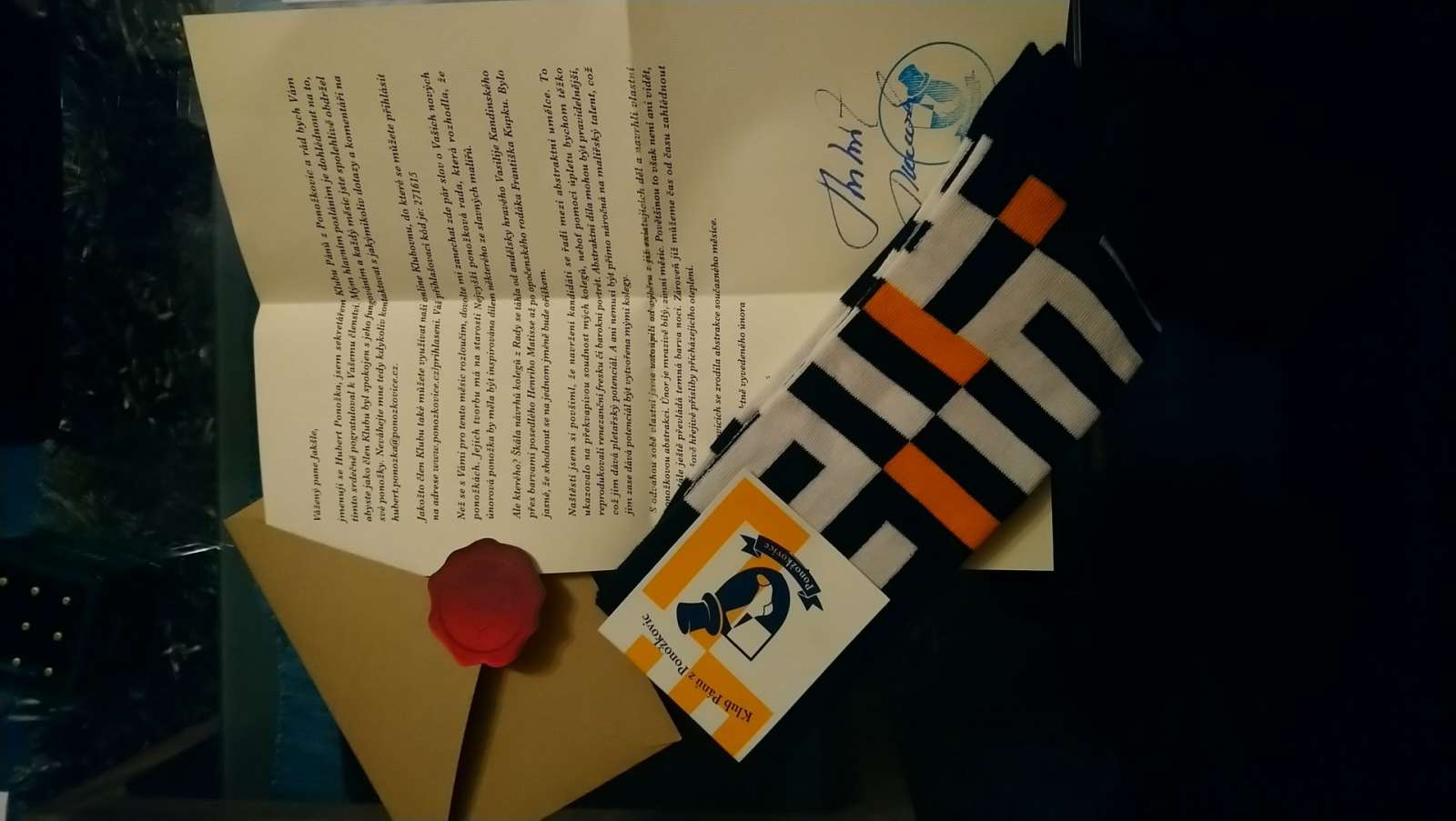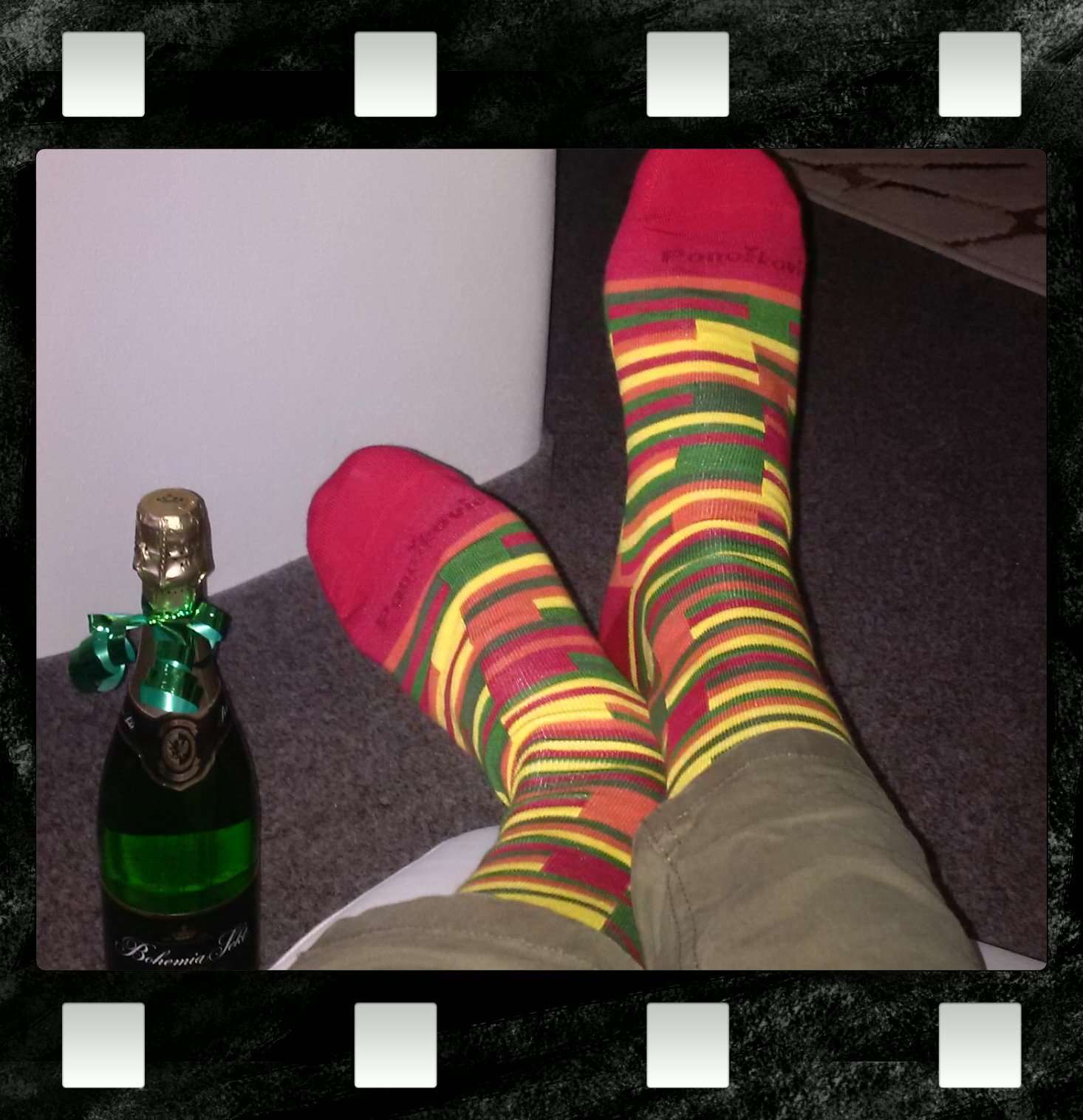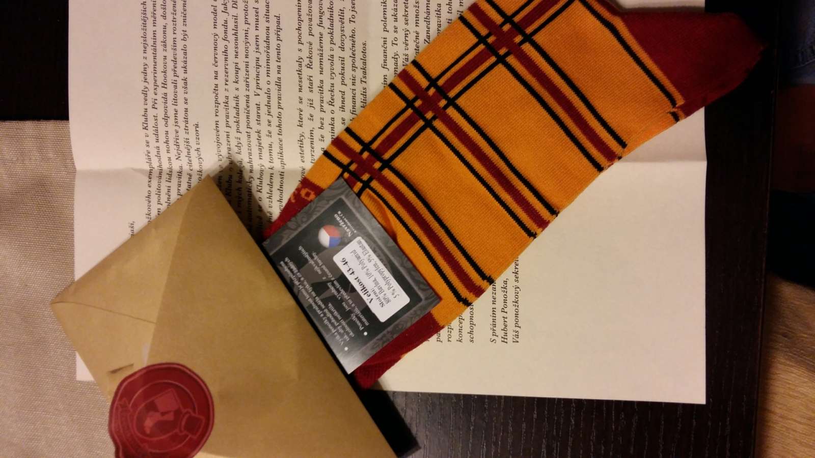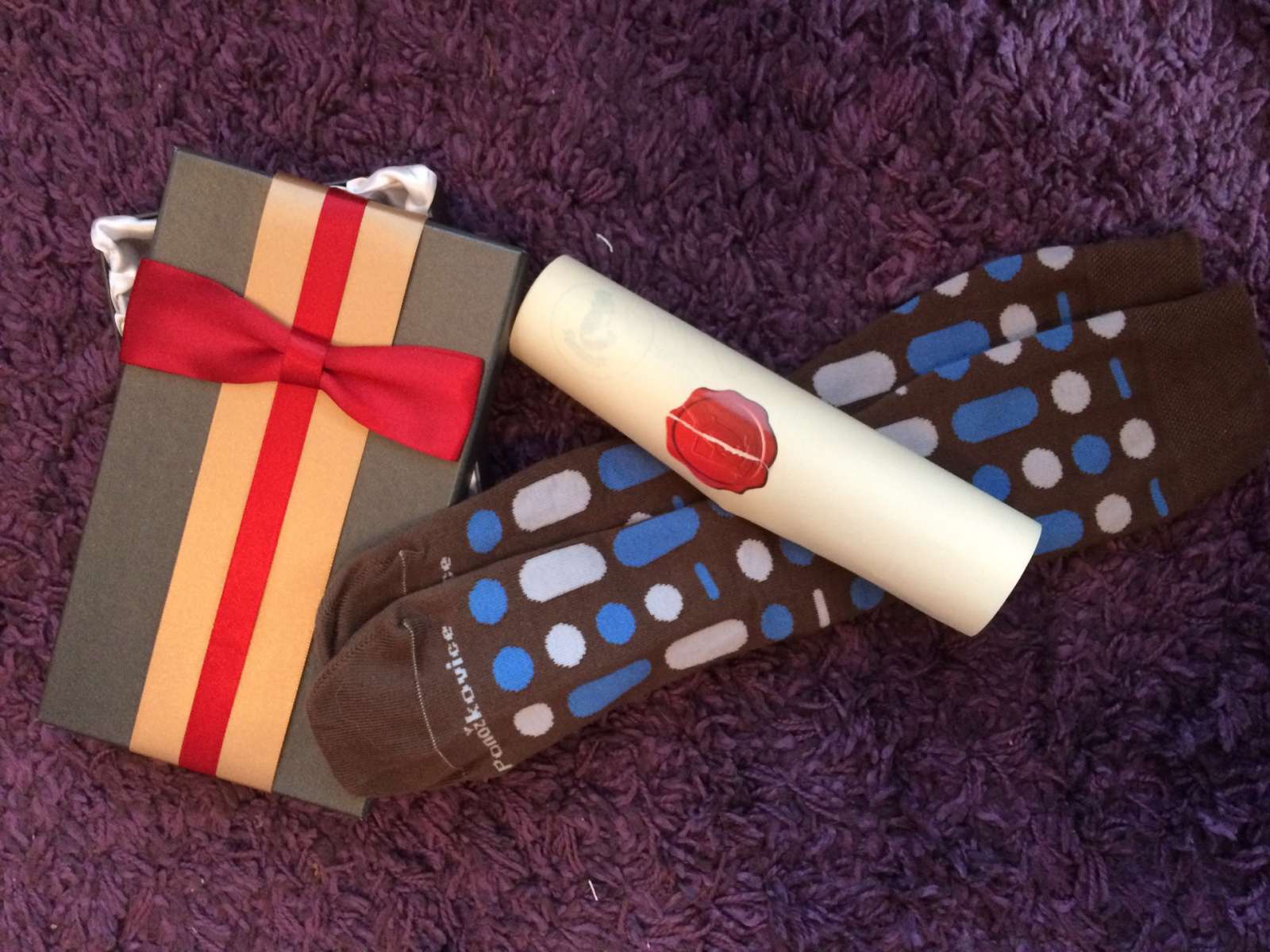 Přijedu domů po náročném víkendu a hle ... obálka s neznámým a neobvykle měkkým obsahem. Netuše žádnou zradu, jal jsem se balíček rozdělávat. Předčasné vánoční překvapení na mne vykouklo i se zlatavým dopisem. Párek originálních ponožek luxusně padnoucích na mé znavené nohy. Zítra musím vyzkoušet jejich eleganci v běžném životě...