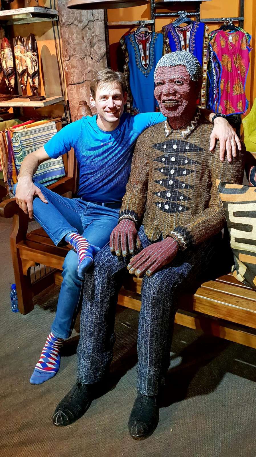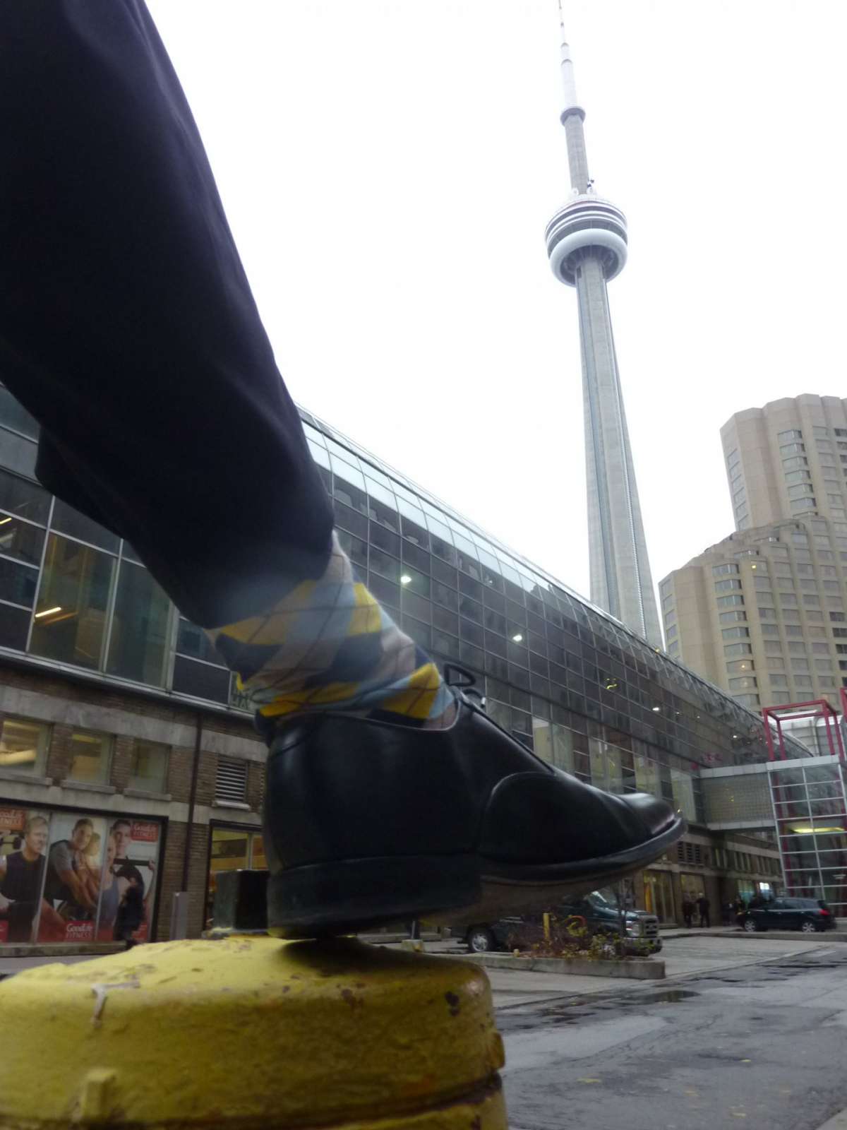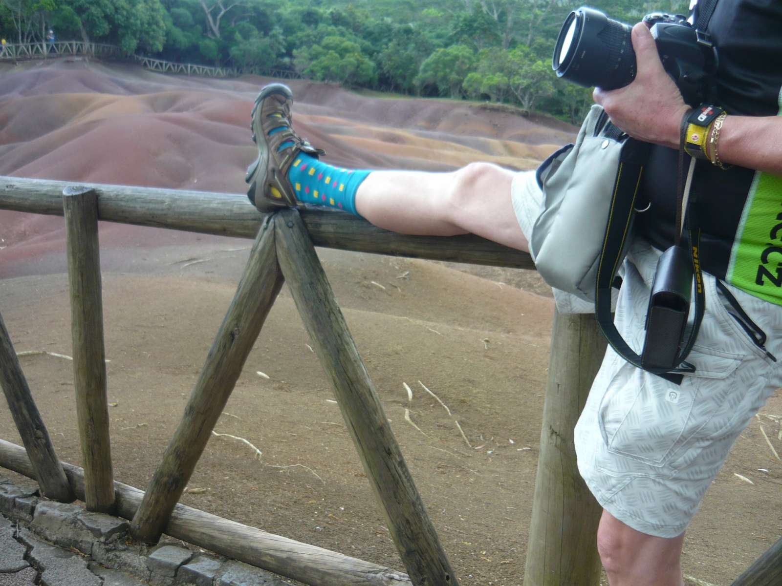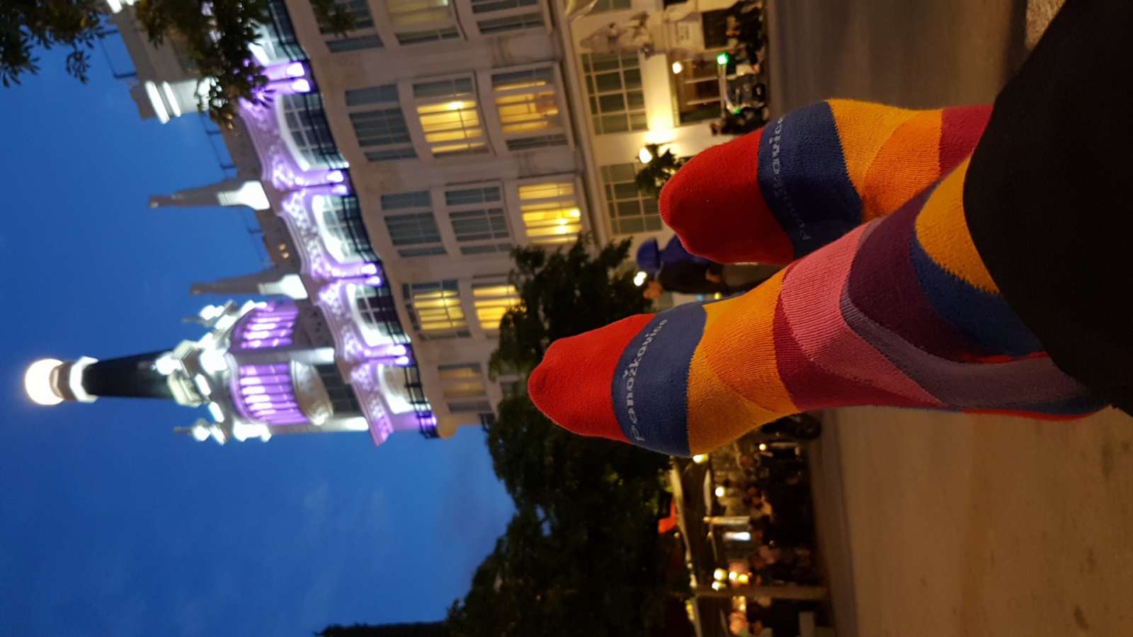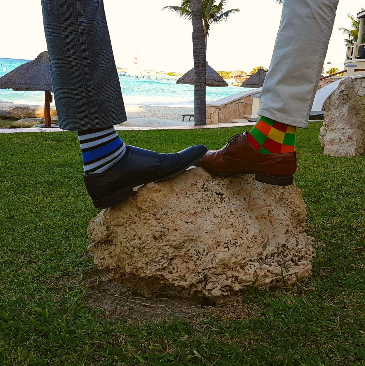 Na fotografii lze vidět dva ponožkomily z Nového Zélandu, hrdé členy Klubu Pánů z Ponožkovic. Ačkoli se Kevinovy ponožky (vpravo) zdají být před fotoaparátem trochu stydlivé, ve skutečnosti se při každé příležitosti směle vystavují na obdiv celému Aucklandu.