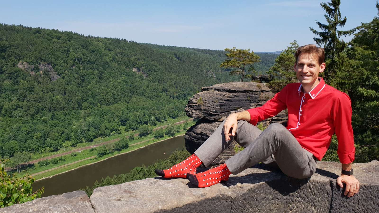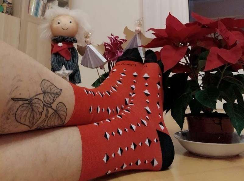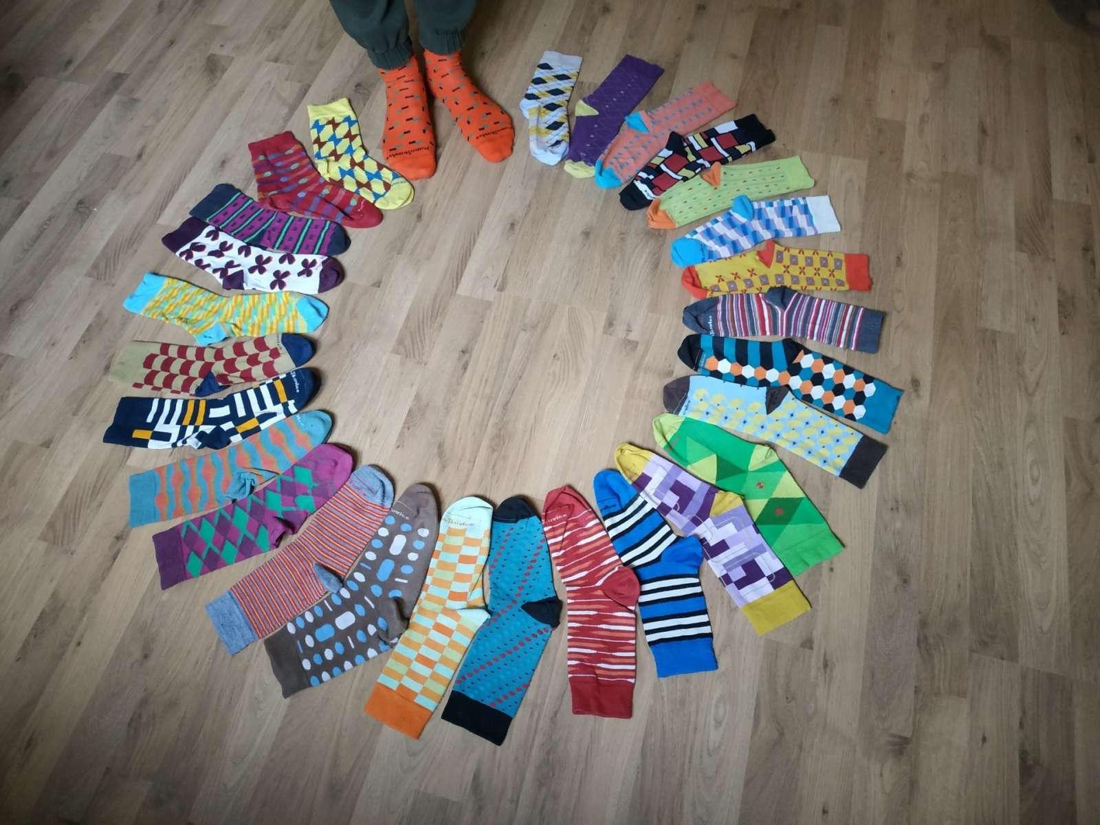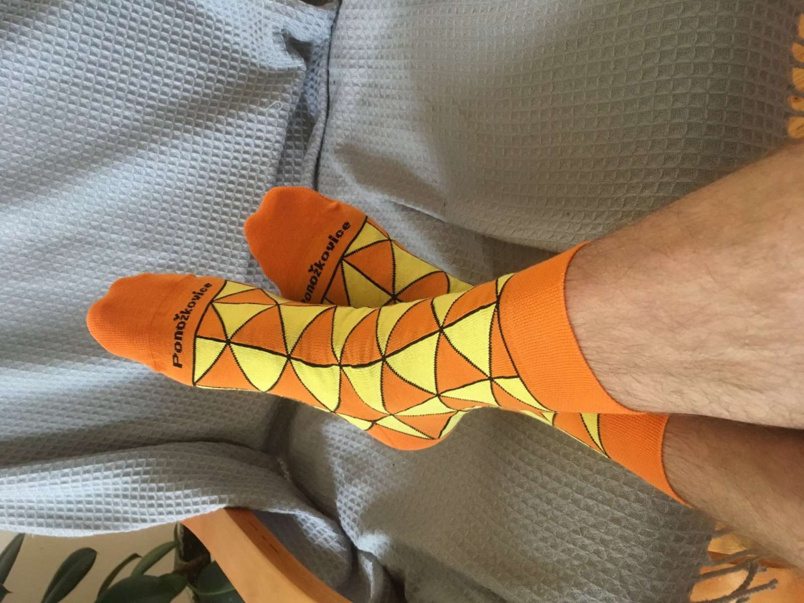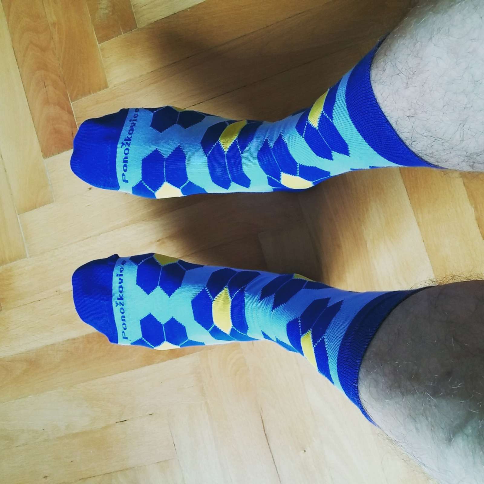 Můj příběh začal o Vánocích 2016, kdy na Ponožkovice narazila moje přítelkyně. Se strachem mi pod stromeček objednala předplatné jen na 3 měsíce, kdyby se mi pestrobarevnost nelíbila. Byl jsem zvyklý na jednobarevné ponožky. Tak moc jsem si ponožky z Ponožkovic zamiloval, že si předplatné prodlužuji, jak to jen jde. Měl jsem zhruba půlroční pauzu v r. 2018, kdy na ponožky nebyly finance. Teď ale pokračuji dál. Každý měsíc se moc těšíme na nové a na příběh, který se k nim váže. Zamiloval jsem si je a žádné jiné ponožky v šatníku už nemám. Jsou natolik kvalitní, že jsem ještě ani jedny nemusel zlikvidovat. Také se mnou hodně procestovaly. Podívaly se se mnou např. na Mallorcu, na Island, do Turecka, do Egypta a na spoustu míst v České republice. Zkrátka na ně nedám dopustit. Na fotce jsme si dali práci a seřadili jsme je tak jak mi přišly. Od nejstarších inspirované vzorem "argyle", nebo méně používaným golfovým vzorem, až po nejnovější, oranžové, inspirované největším budovatelem v historii a to cihlou :-)