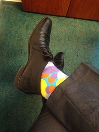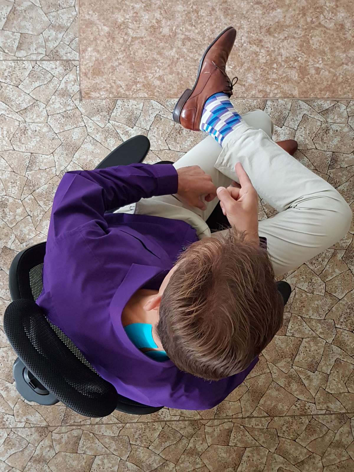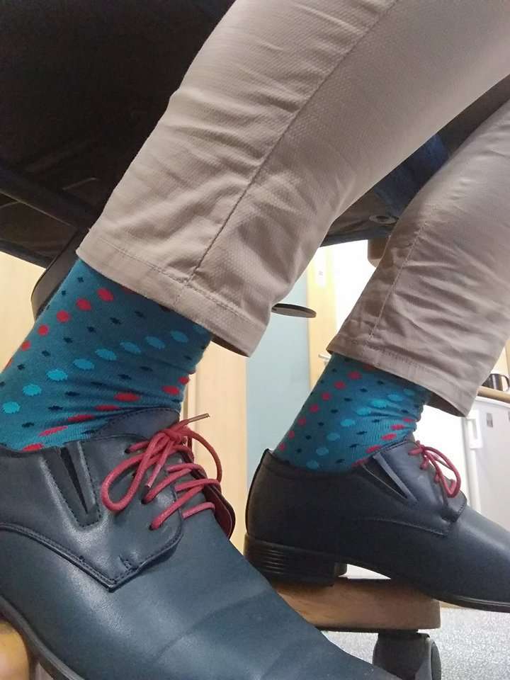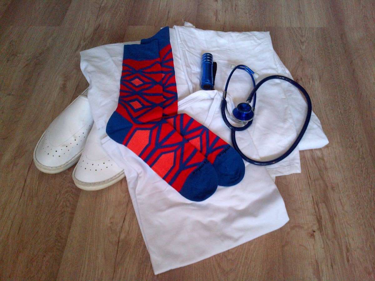 Barevné sladění ponožek s nezbytným instrumentáriem pro základní fyzikální vyšetření pacienta (stetoskop, baterka) se zdá být takřka dokonalé! Přesvědčte se prosím sám z přiložených fotografií!