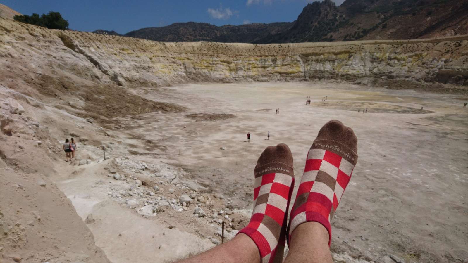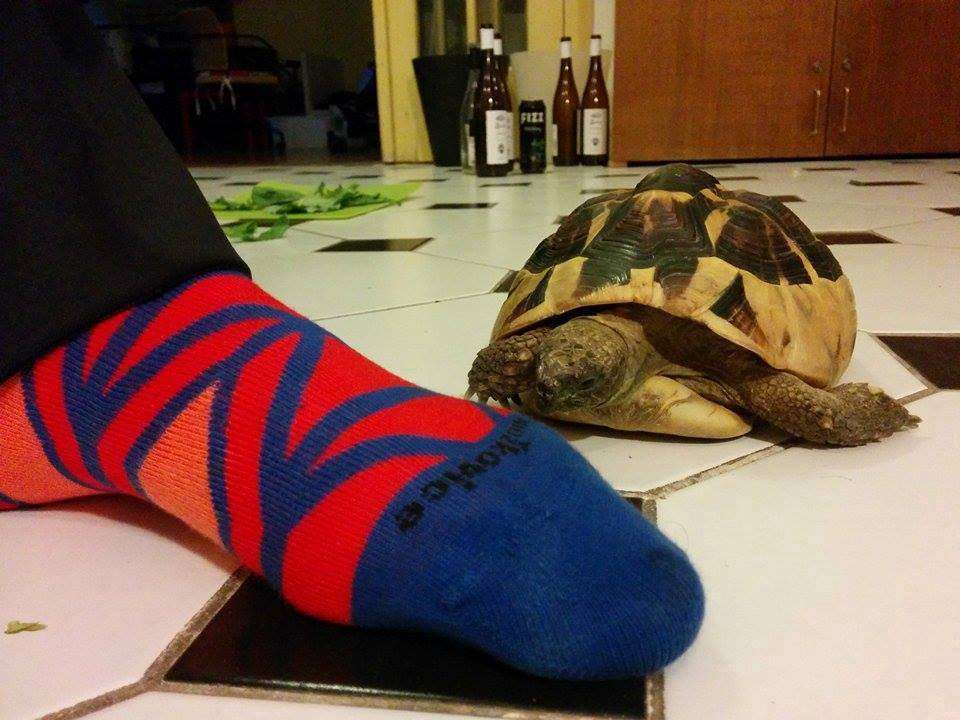 Když jsem četl upozornění ohledně tohoto páru ponožek pro teplé letní dny, nebral jsem poskytnutá varování na lehkou váhu. Systematicky jsem se vyhýbal veškerým potenciálním dravcům, ale při vší prozřetelnosti jsem zapomněl na predátora největšího. Želvu Žlutohnědou.