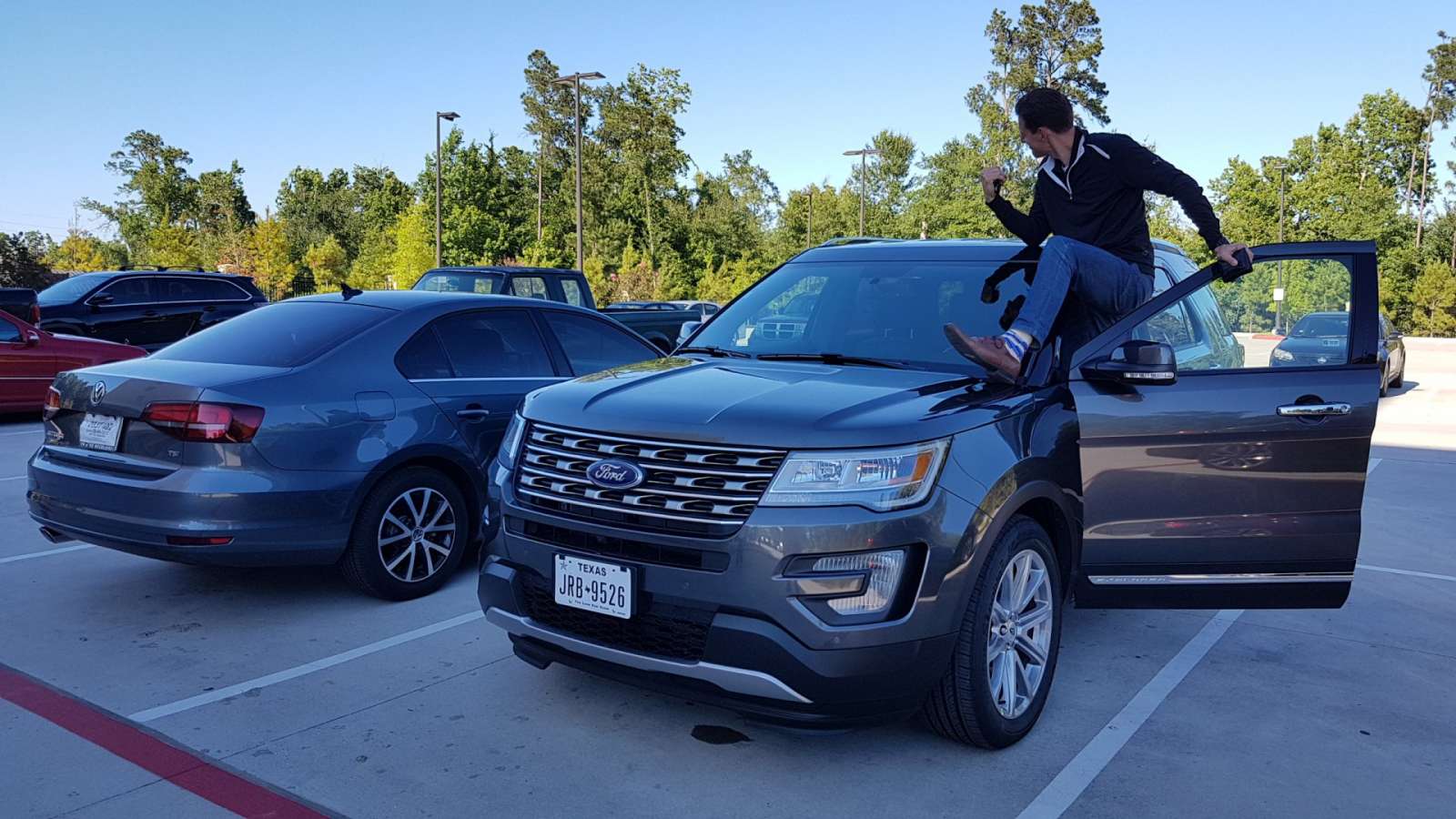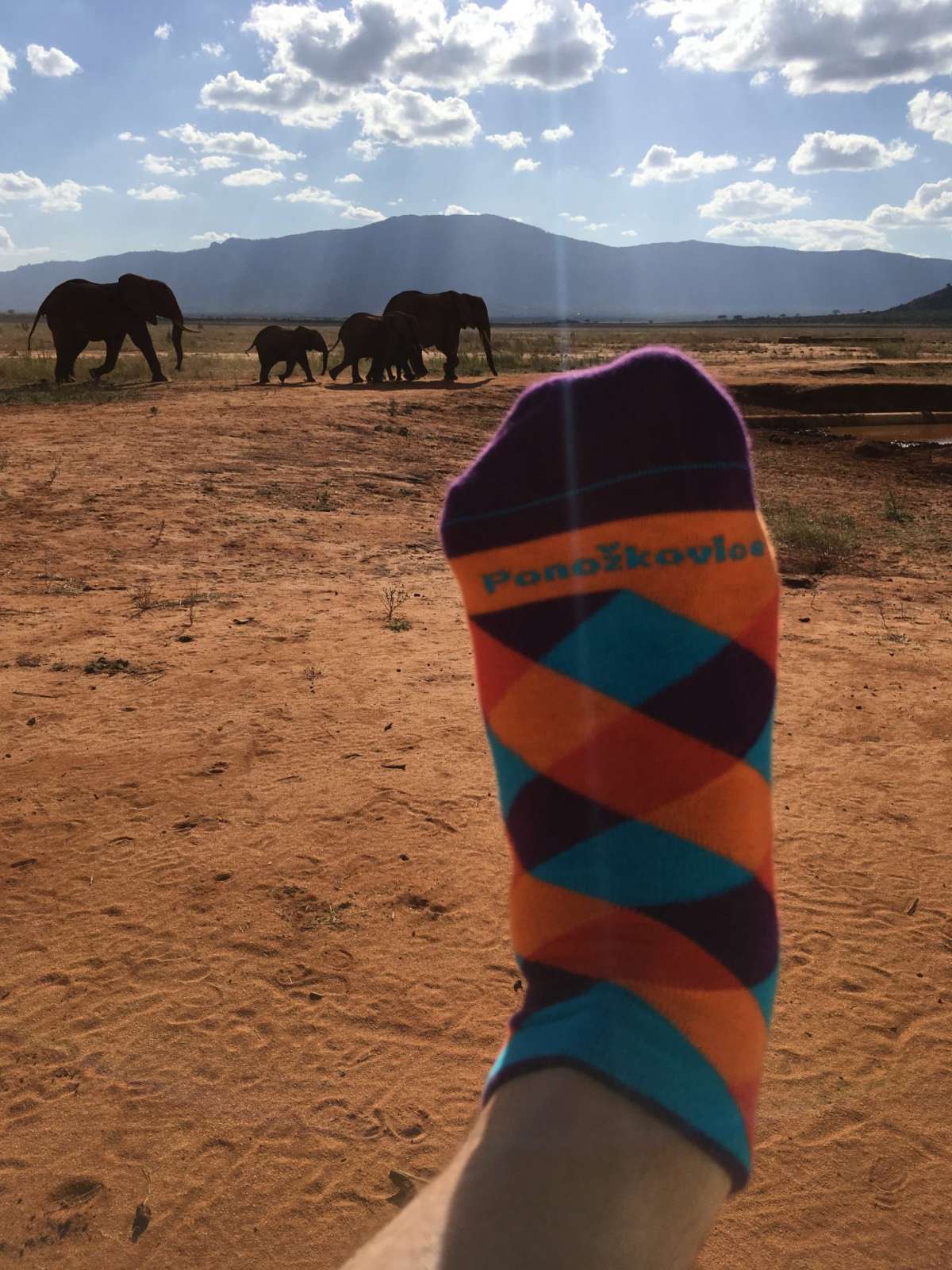 Noha vystrčená ven z okna Vanu a rodinka slonů uprostřed divočiny - SAFARI!