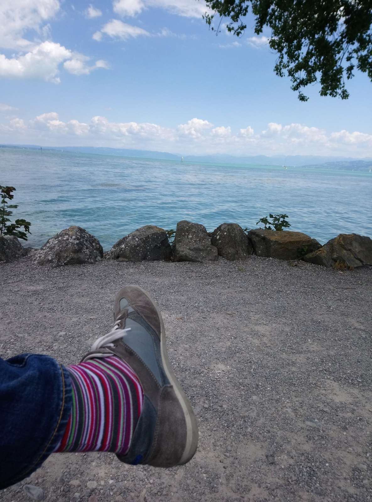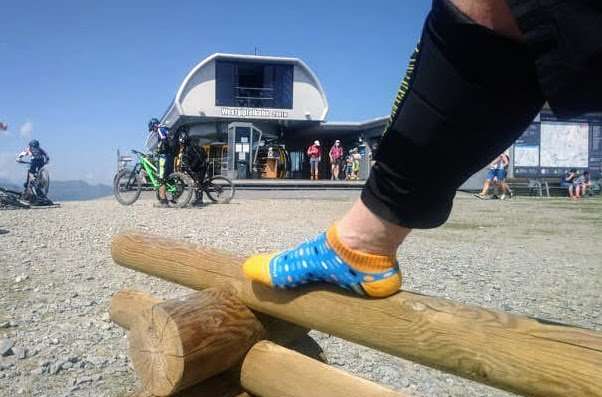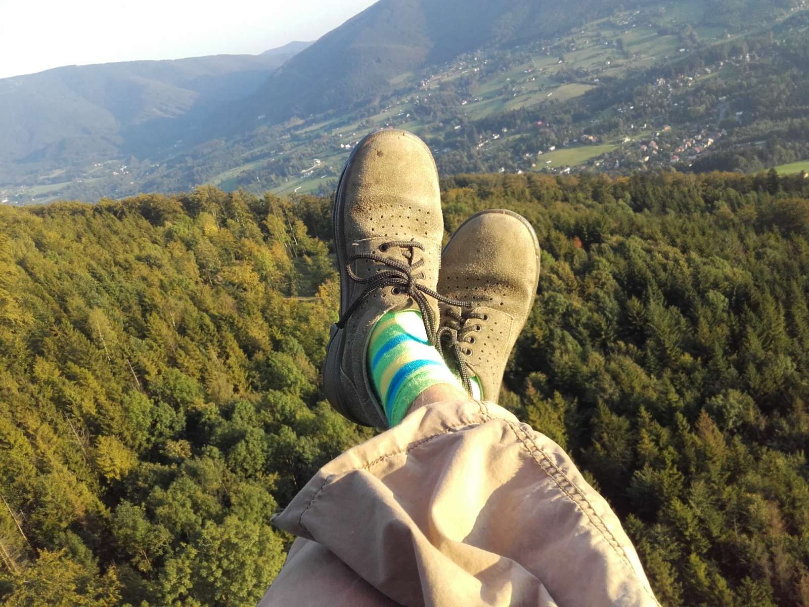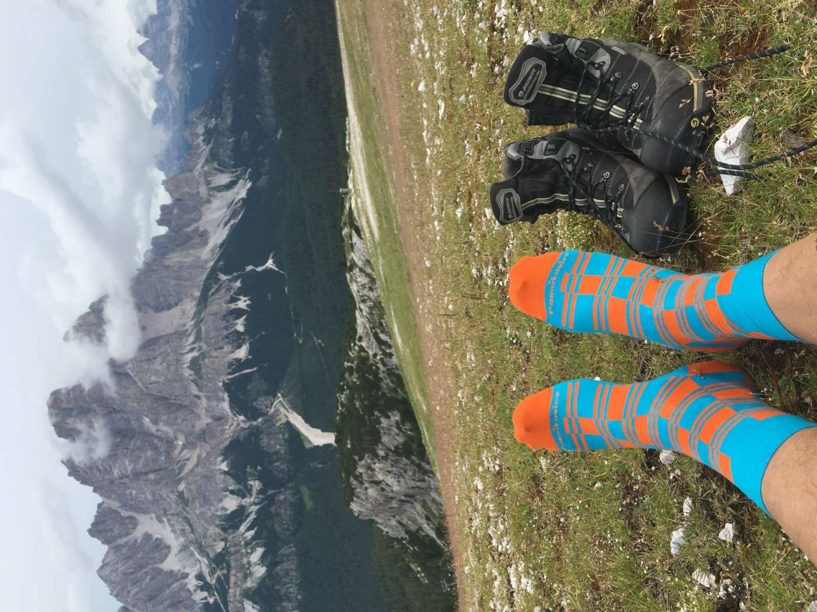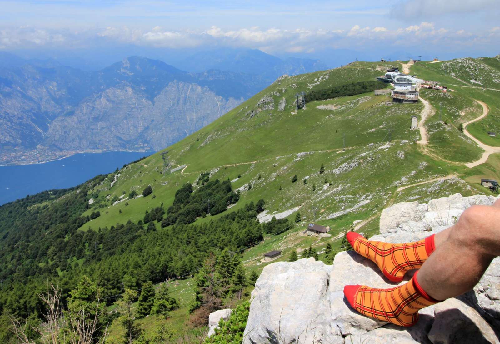 Tentokráte si ponožky vyšláply hodně vysoko. Pod nimi Monte Baldo 2 218 metrů nad mořem. Vlevo dole však není moře ale Gardské jezero.