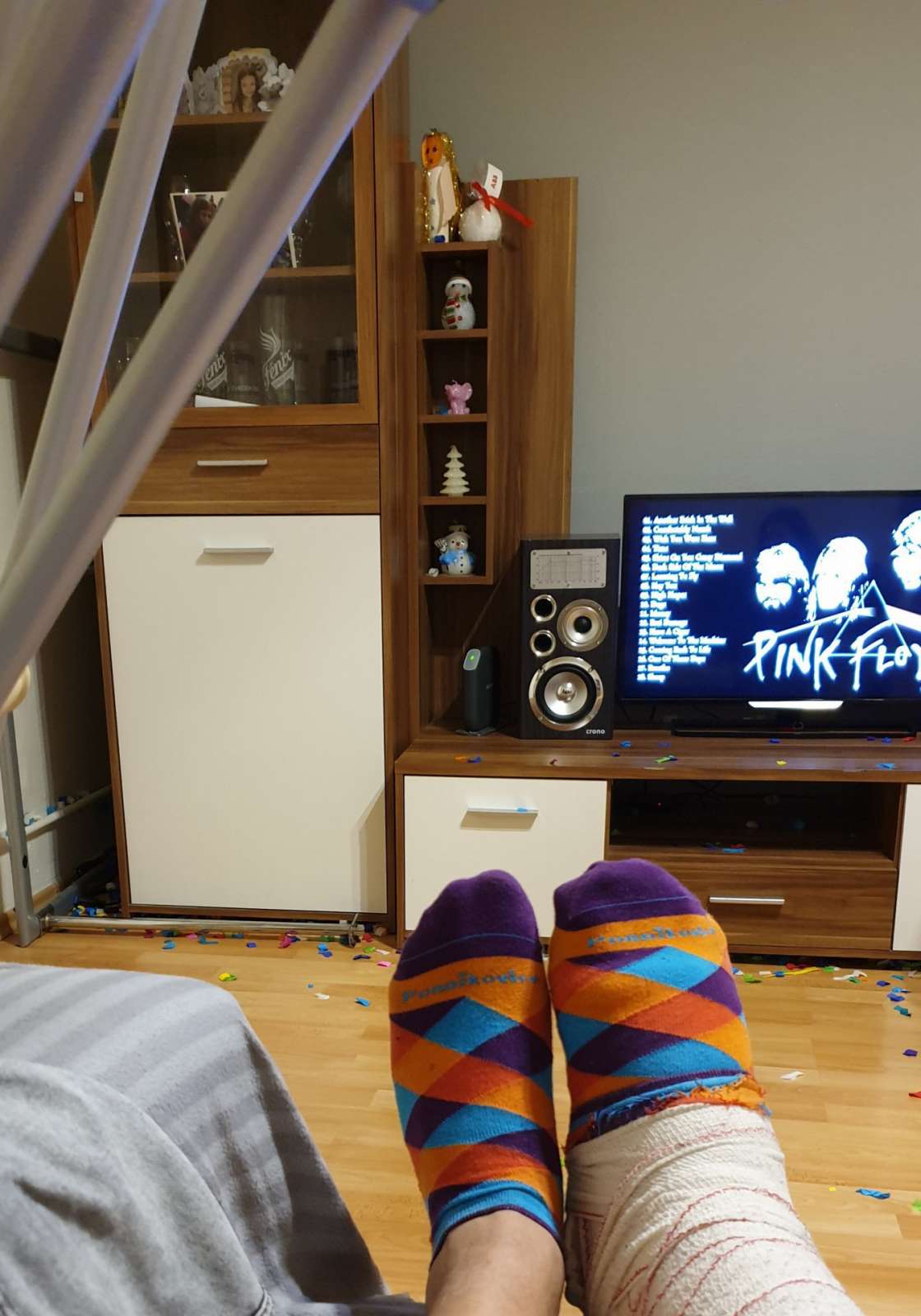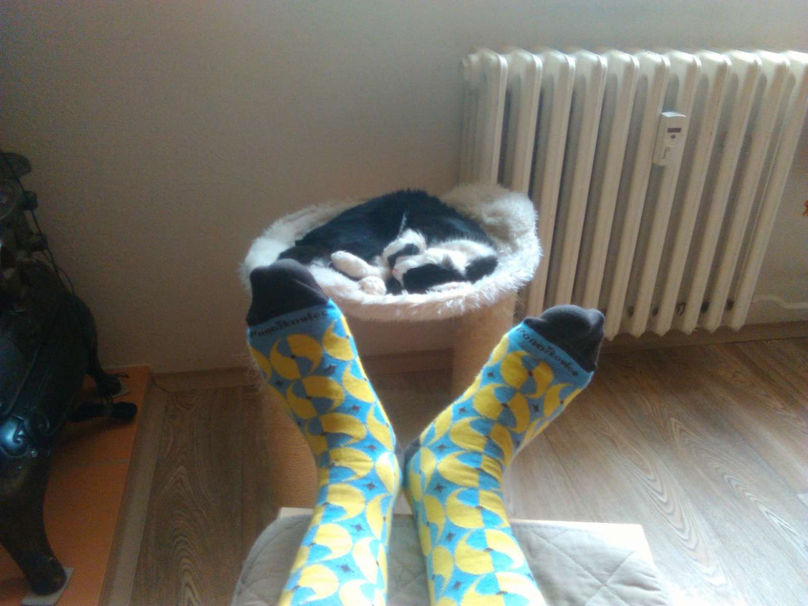 Syn konečně spí, kocour blbne a manželka mi fotí nové ponožky ...