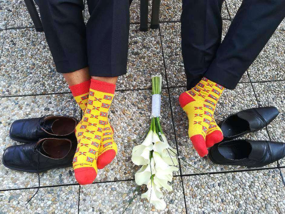 Členství v Ponožkovicích začalo svatebním darem od snoubenky a pokračovalo ve stylových tematicky laděných svatebních ponožkách. Asi štěstí...