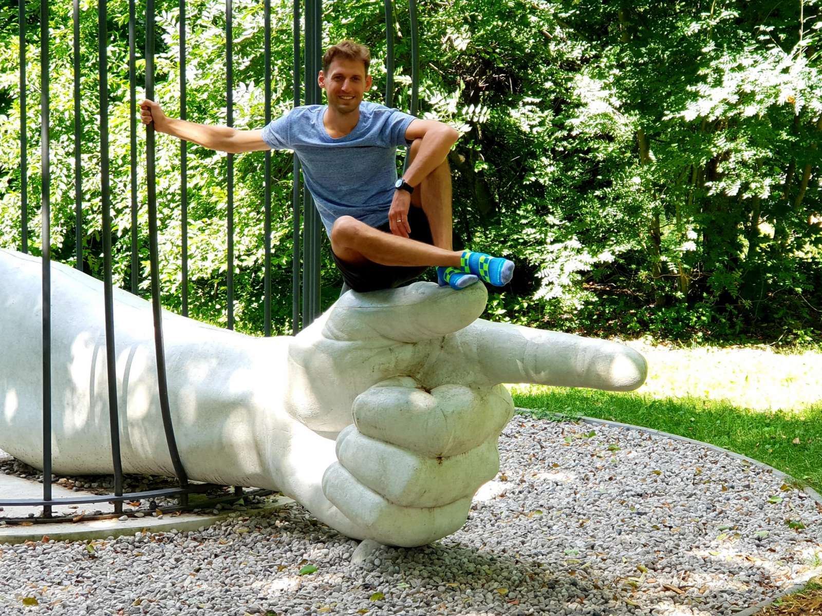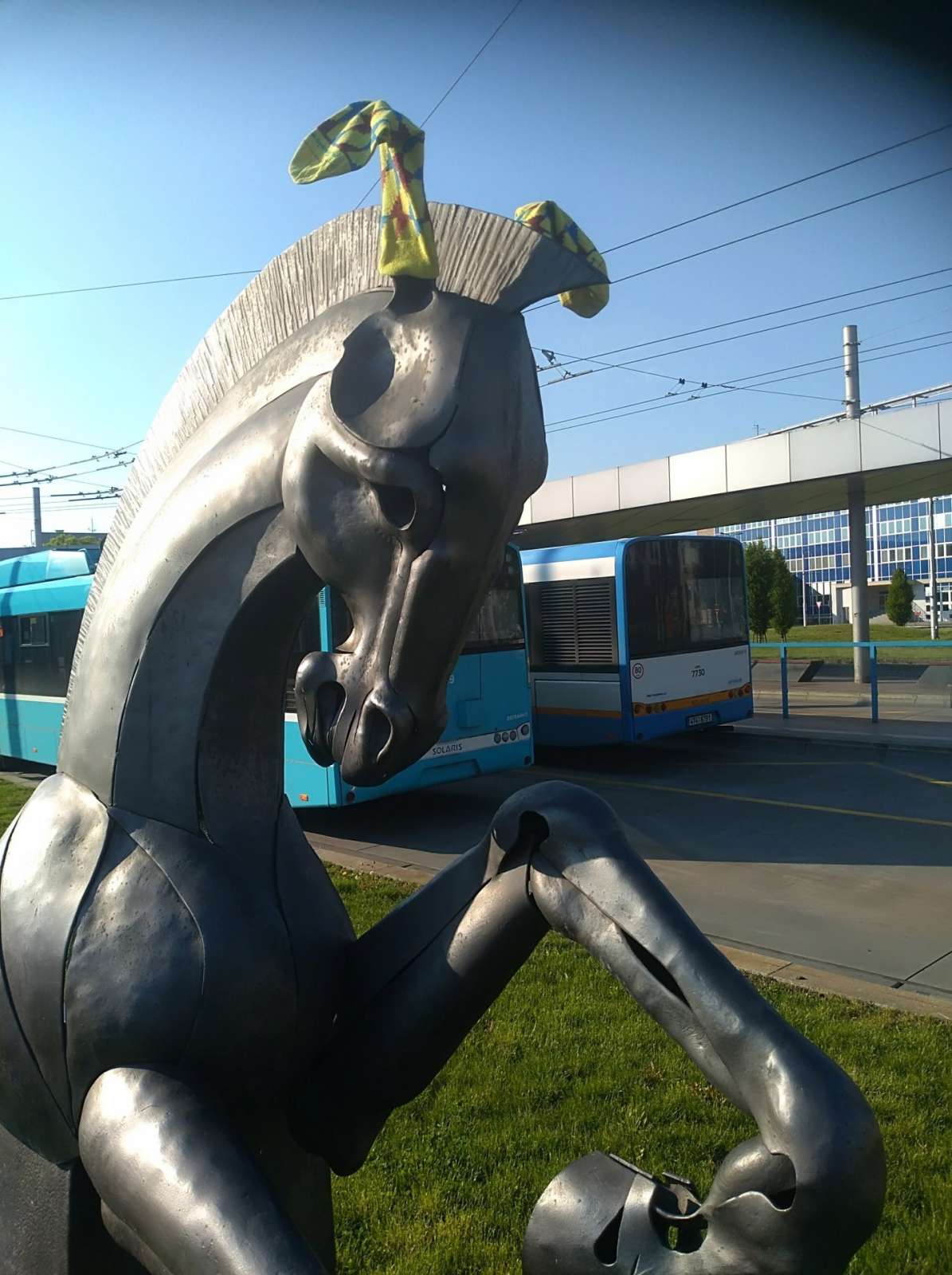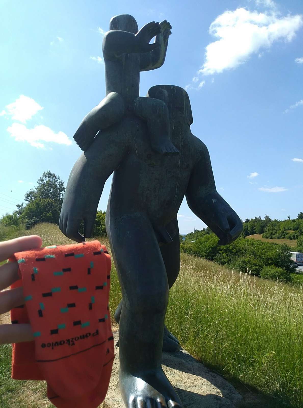 Ponožky a dílo Maria Kotrby po třetí :-) Ano, tuto impozantní plastiku, stejně jako exekutora v Brně a Veselého pastýře u Lipníka nad Bečvou, vytvořil už bohužel zesnulý sochař Marius Kotrba. Tato plastika se nachází vedle dálnice (a kolejí) za městskou částí Olomouce - Nemilany. Je odtud skvělý výhled jak na Olomouc, tak na velkou část Hané...