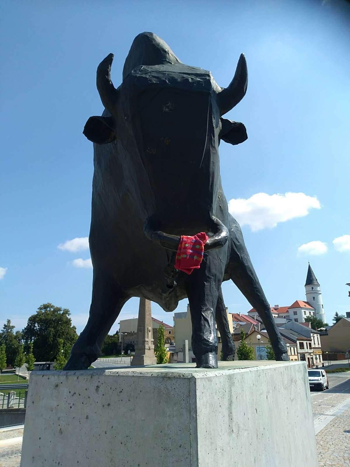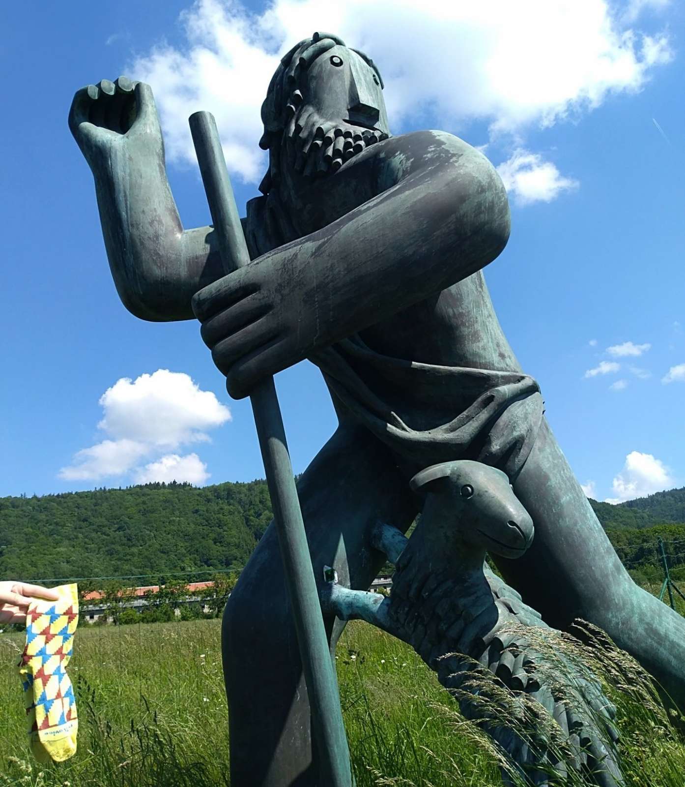 Další zajímavá socha od sochaře Maria Kotrby (stejně jako brněnský exekutor). Nachází se u dalnice poblíž Lipnika nad Bečvou