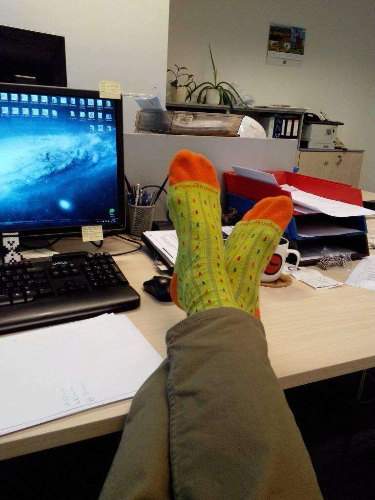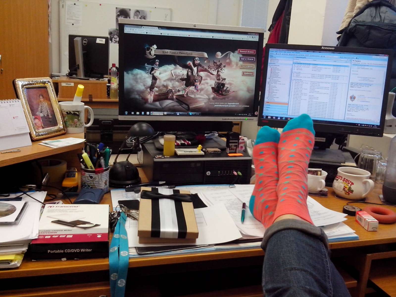 Stal jsem se člem klubu a dostal své první klubové ponožky. Proto jsem si je nechal na příležitost vskutku slavnostní. Po krátkém seznámení s výpočetní technikou absolvují ponožky cestu do Prahy. No uznejte, je to věc vskutku výjimečná (!)