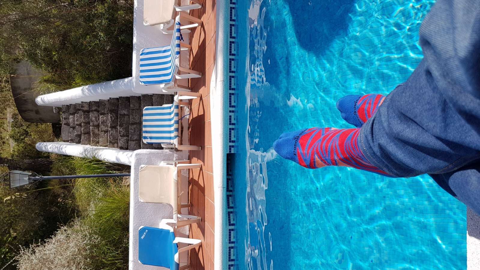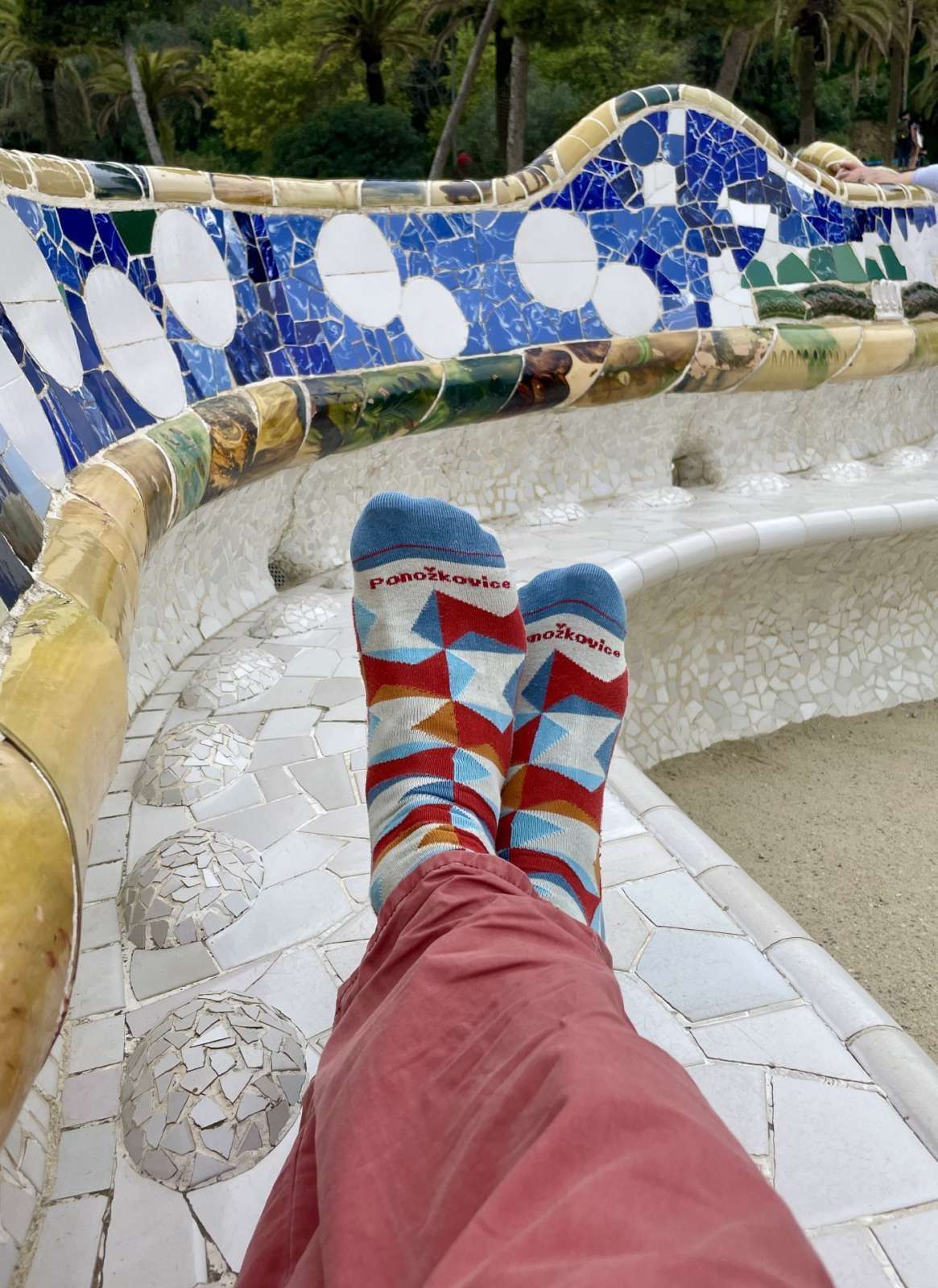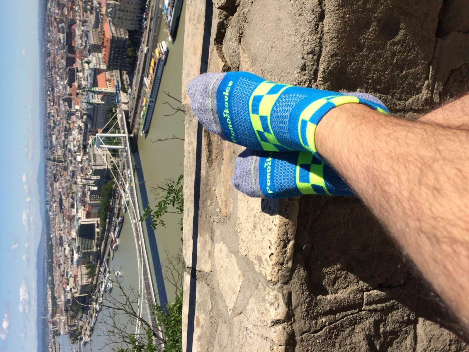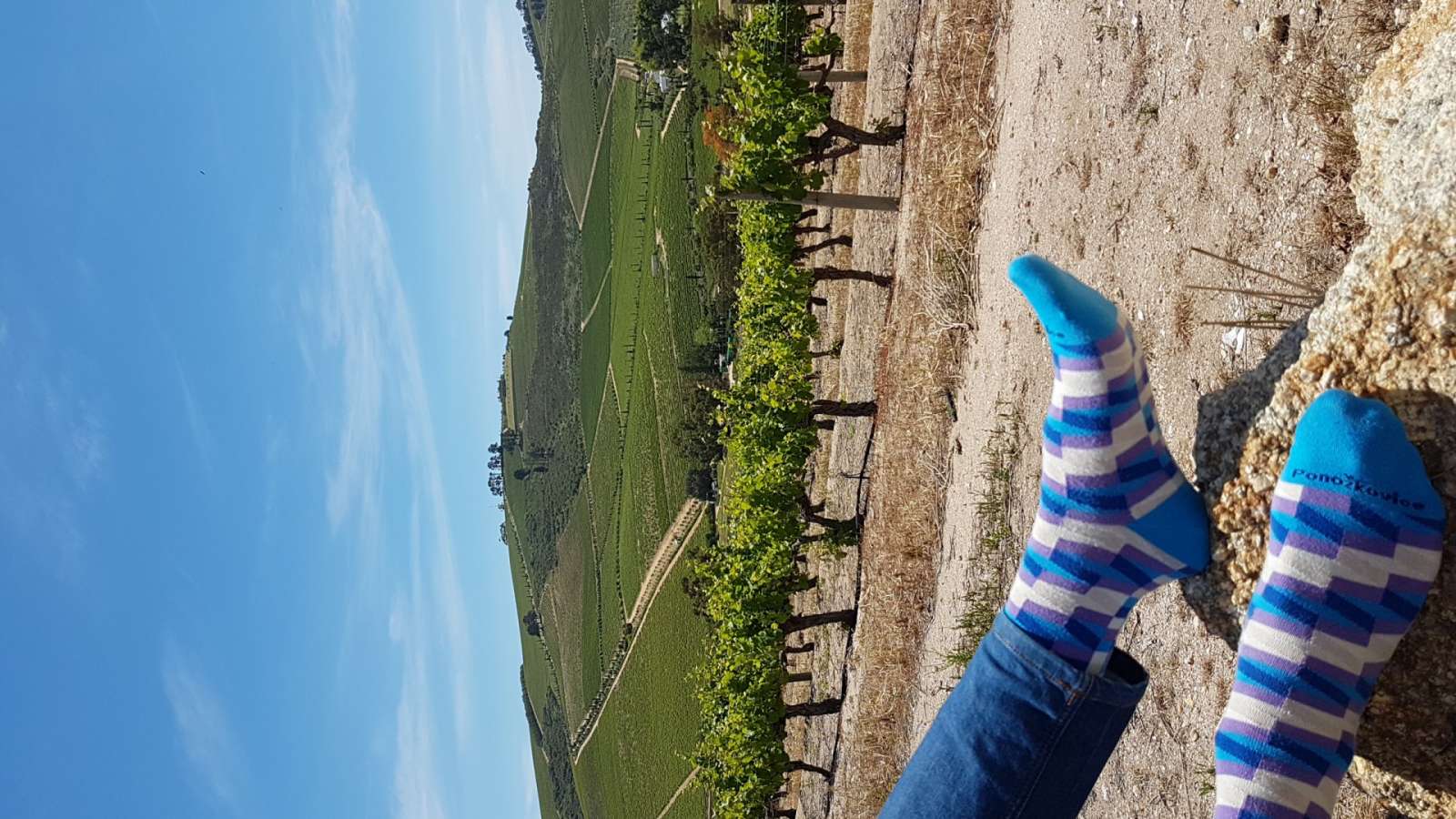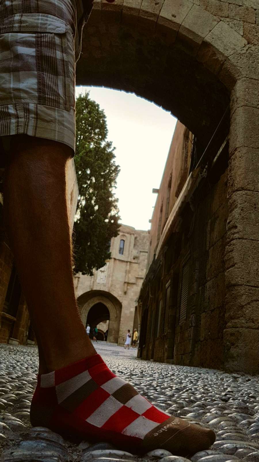 Na fotce jsou kotníčkové sportovní ponožky, které nám pomohly zdolat náročný výstup na klášter Puig de María, blízko obce Polença na Mallorce.
