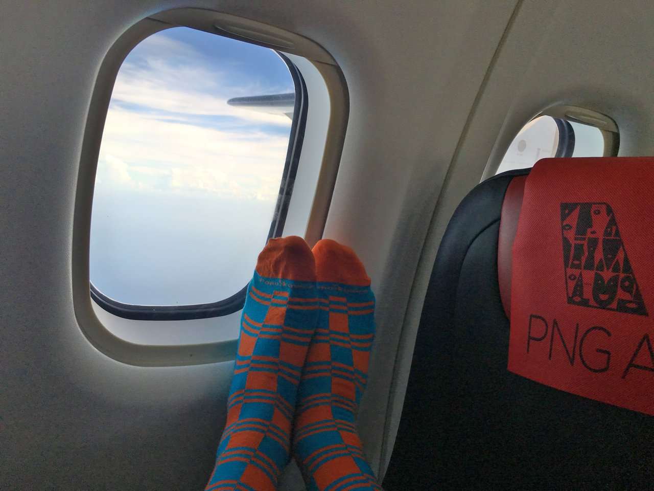 Fotografie byla pořízena na palubě letadla společnosti PNG Air při letu z ostrova Rabaul do hlavního města Port Moresby.