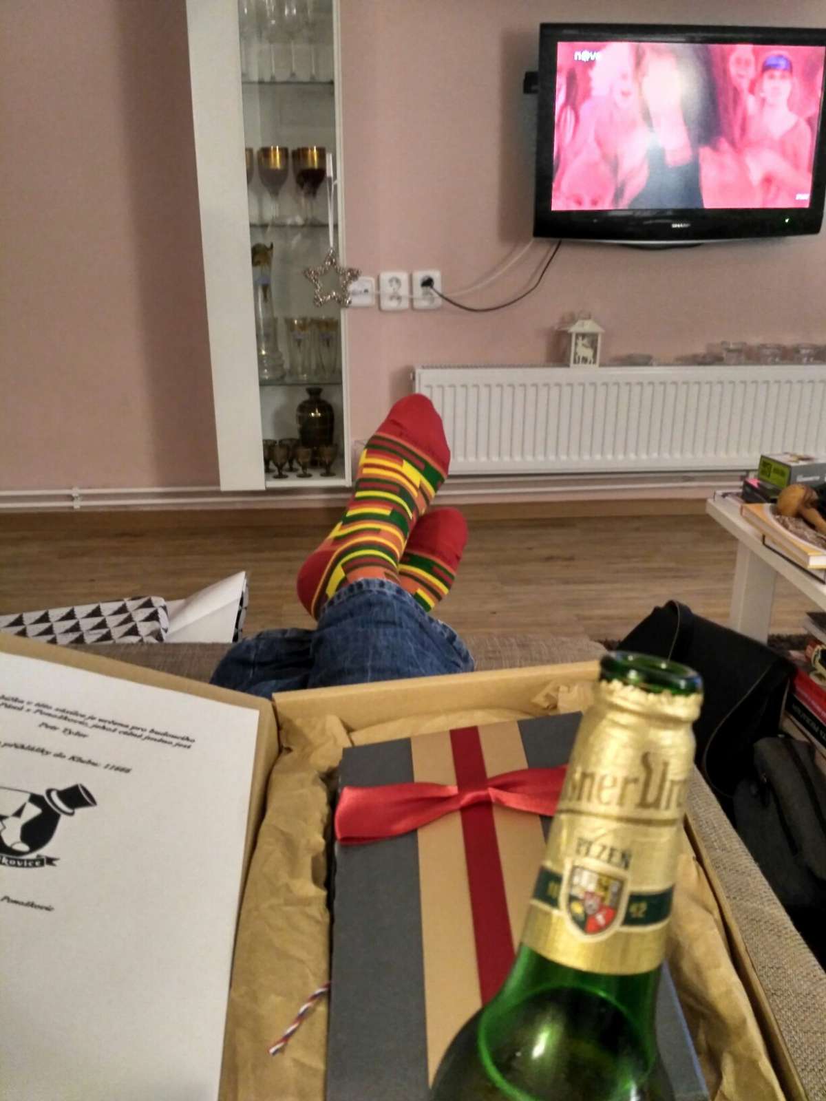 Hned, co jsem tu nádhernou krabici otevřel, nasadil jsem si ten nejlepší pár ponožek, co mám.
