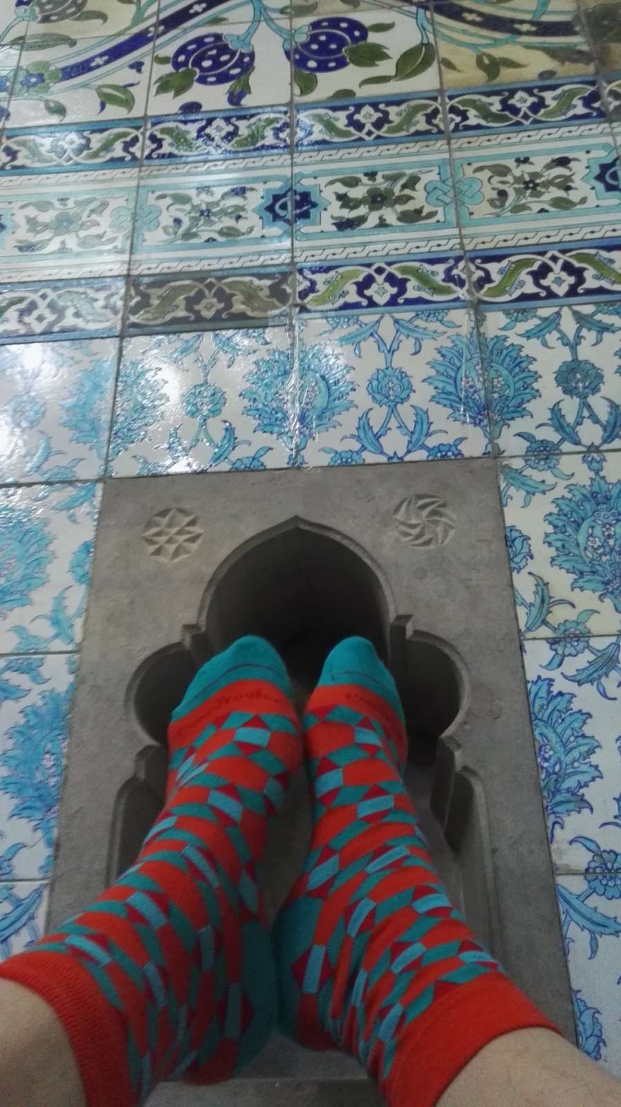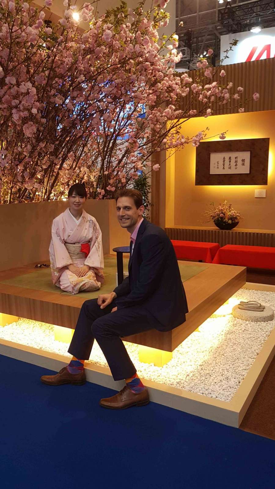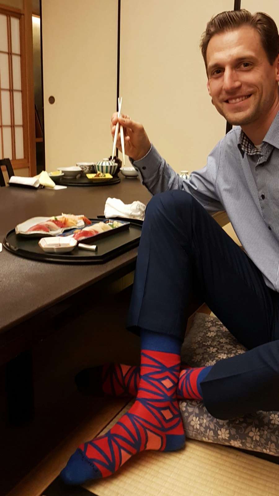 i když nebyl Movember, rád jsem si pro tuto jedinečnou příležitost vybral knírkaté ponožky. Japonská gejša se chvíli zdráhala, než mi dovolila přisednout na čajový oltář.