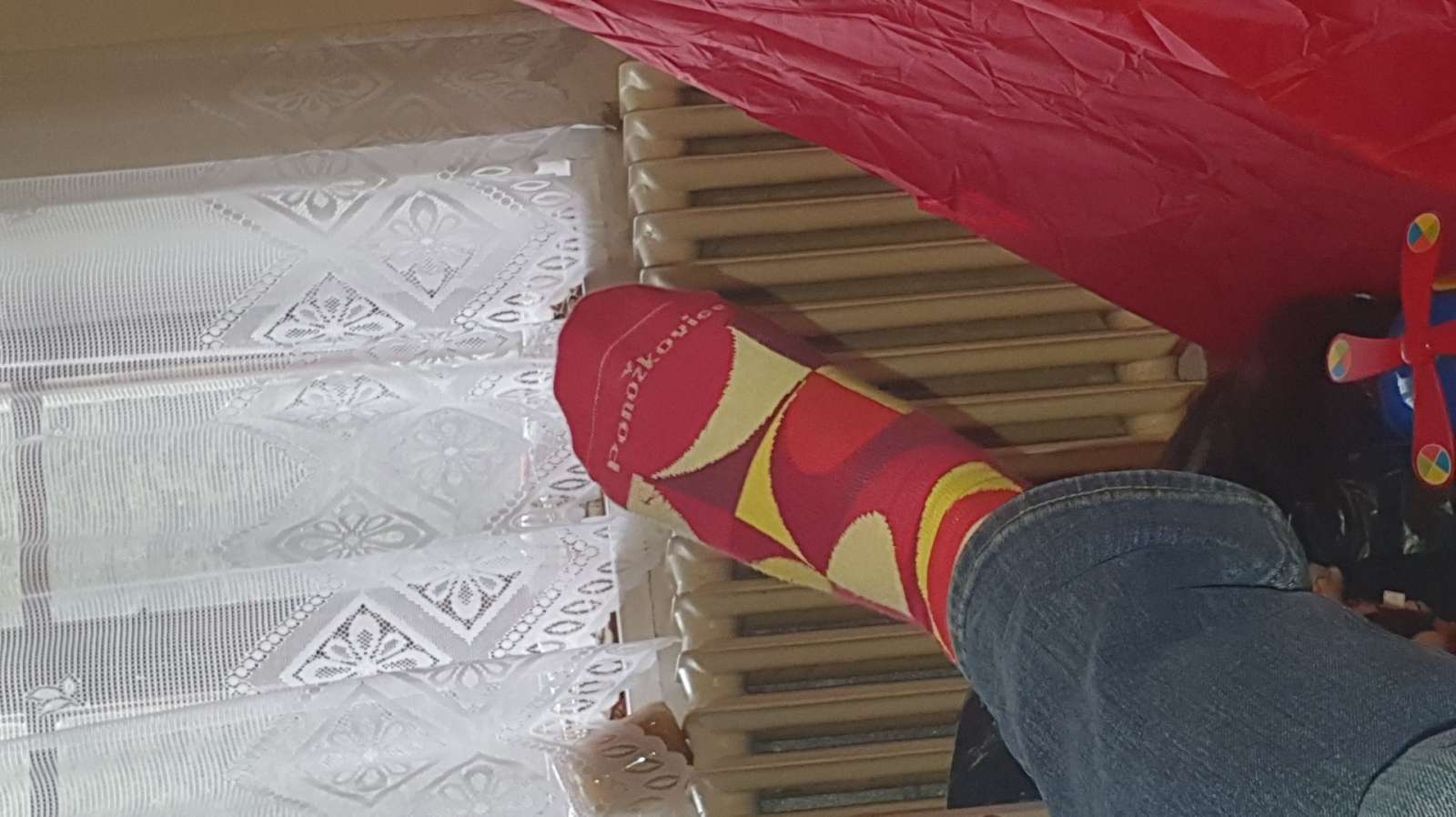 I takto se dají ponožky z Ponožkovic využít. Děkujeme malé A. za svolení ke zveřejnění fotografie.