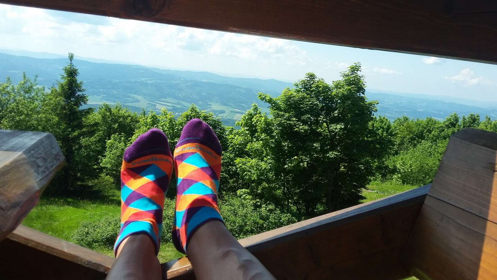 Při výstupu na KOPEC budily ponožky zaslouženou pozornost, hlavně u přítomných dam. A vzrušení nastalo i v restauraci po výstupu :-)
