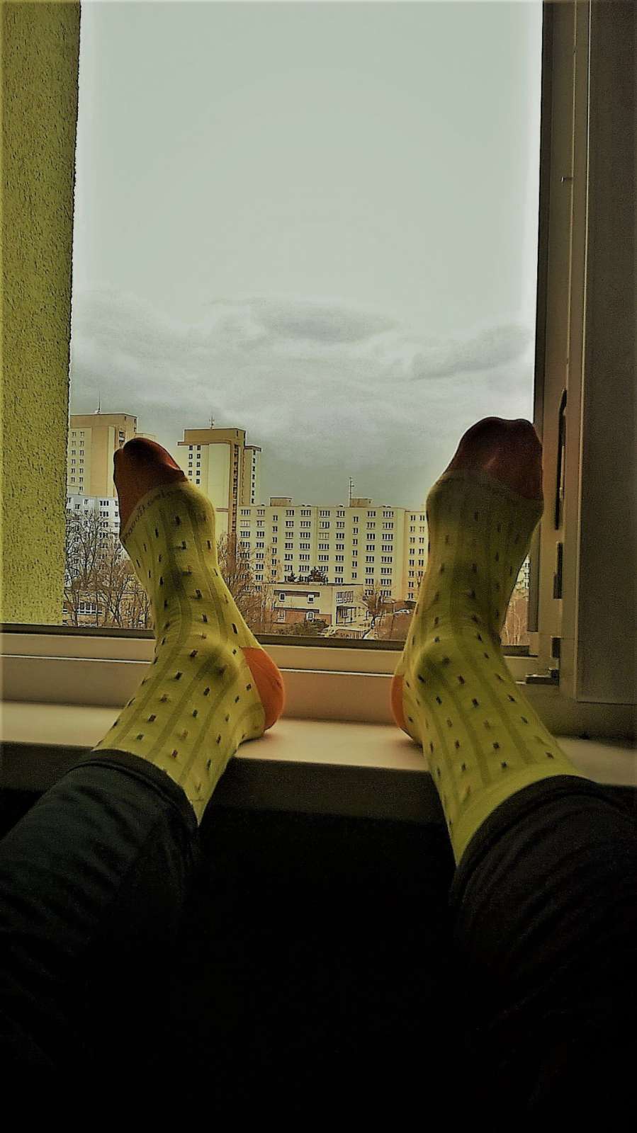 Od podání přihlášky čekal jsem koliko dní, vyhlížejíc doručovatelky balíky, avšak stále nic. Když tu náhle na obzoru pátého dne zjevila se víla Míla za dveřmi stavení a nesla vzácný balík. První ponožky z Ponožkovic!