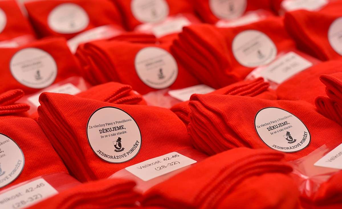 Nejen materiál, nýbrž i oděv využitý při péči o vysoce infekční pacienty je v maximální míře likvidován ihned po poskytnutí péče, aby se minimalizovalo riziko nákazy. Ponožek nevyjímaje. Vzniká tak celá čeleď ponožkových kamikadze, které padnou ve jménu vyššího dobra. Bylo nám ctí moci zajistit pro FN Motol dostatečnou zásobu statečných ponožkových jednorázovek. Ostatně bylo by ostudou, kdyby problém se zásobením nastal v kotlině, kde působí Klub Pánů z Ponožkovic, právě u ponožek.