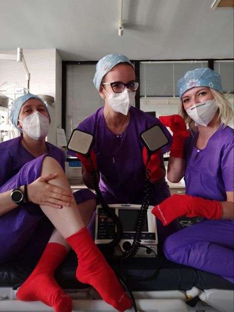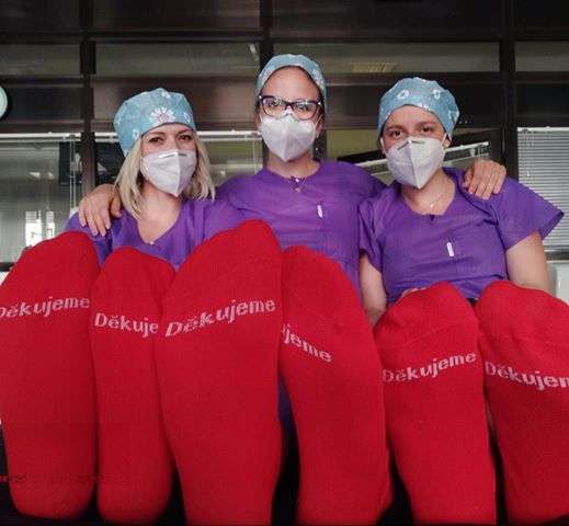V dalším průběhu nastanuvší surreality jsme se pak zaměřili na praktické ponožkové potřeby. Kontrétně jsme dodali 500 párů jednorázových ponožek na infekční jednotku Fakultní nemocnice v Motole.