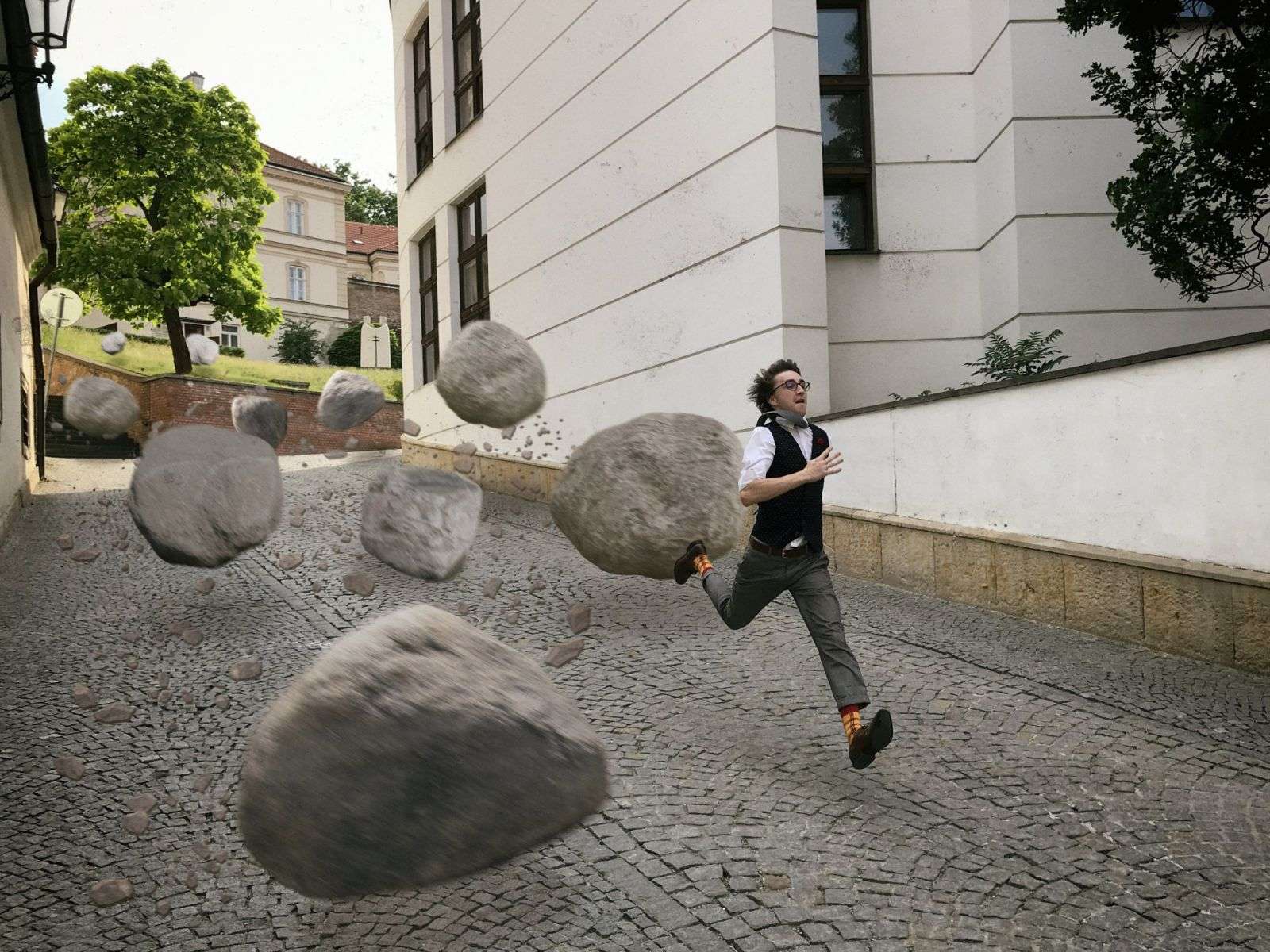 Tak to mi neuvěříte, milí kolegové! Představte si, krásný slunečný den, jdete na procházku, a z nenadání se začnou na Vás valit z Petrova kameny?! Naštěstí polobotky vydržely a vyvázl jsem jen s pár škrábanci. Dávejte na sebe pozor!