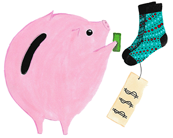 překlad: „Šetrnost je ctnost, nicméně člověk by si nikdy neměl upírat dobré ponožky.“